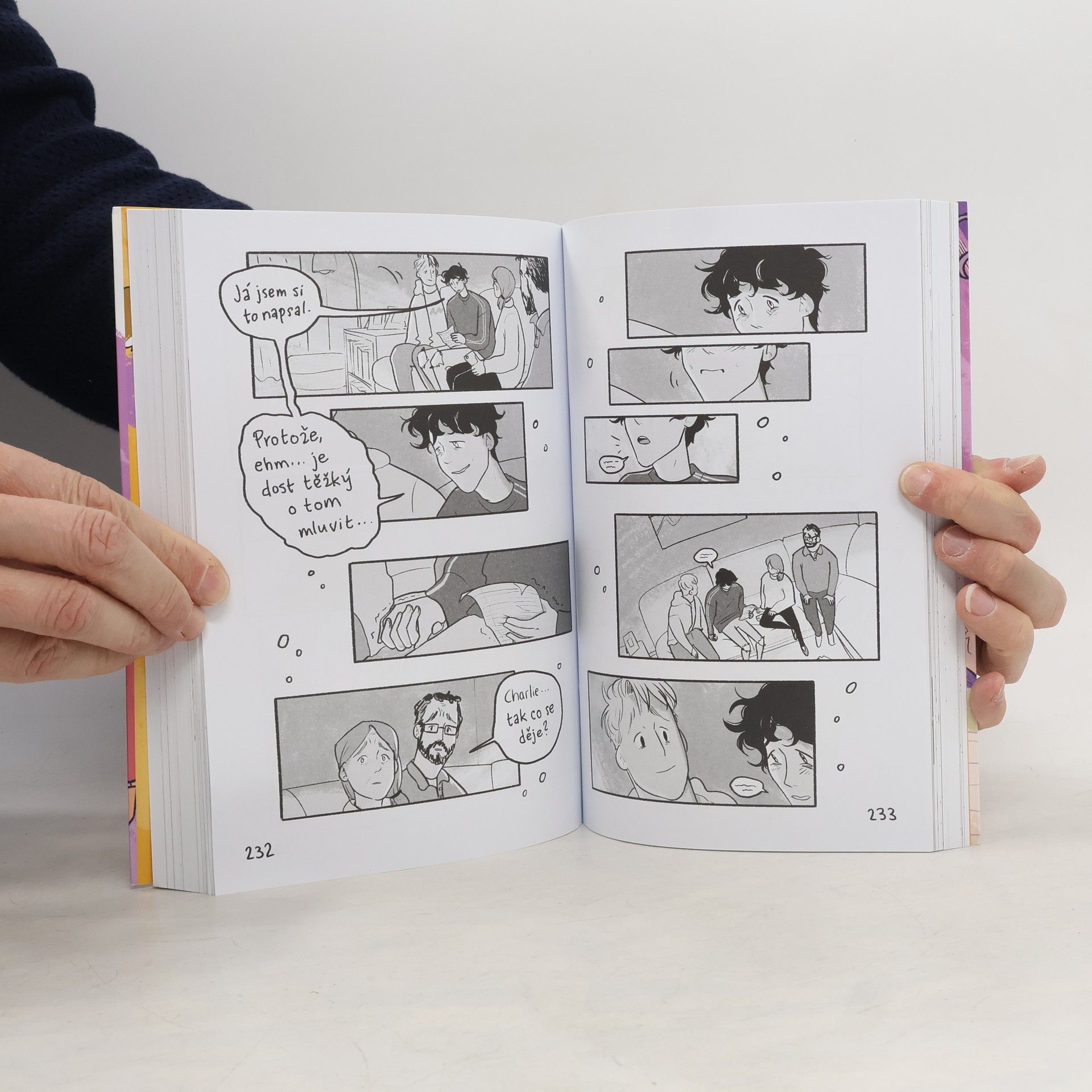 Čtvrtý díl úspěšné série komiksových románů o lásce, životě a o všem, co se stane mezi tím. Charlie si nikdy nemyslel, že by se Nickovi vůbec mohl líbit, ale teď spolu oficiálně chodí a Charlie pomalu začíná být připravený na to, aby vyslovil ta dvě slůvka: Miluju tě. Nick se cítí podobně, ale má toho v hlavě spoustu dalšího – třeba vyoutovat se před svým tátou a pak je tu taky ještě podezření, že Charlie možná trpí poruchou příjmu potravy. Z léta je podzim a začíná nový školní rok a Charlie s Nickem poznávají, co všechno může láska znamenat. Srdcerváči jsou příběhem o lásce, přátelství, věrnosti, ale také o duševní chorobě. Ve střípcích příběhu Nicka a Charlieho se najde každý z nás