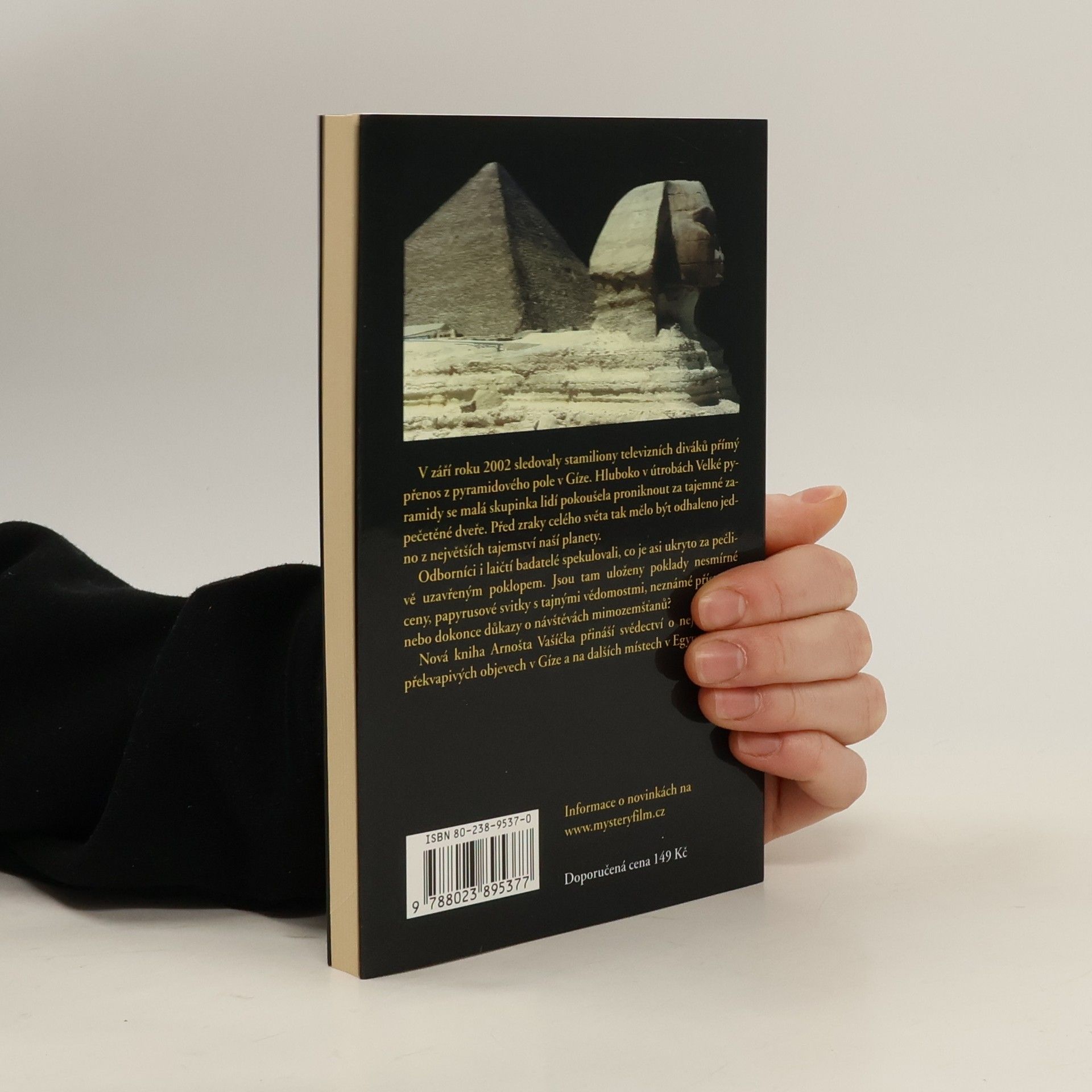 Co se nachází za zapečetěnými dveřmi Velké pyramidy? Kdo spočíval v obřím sarkofágu na hoře Toth? Kým byla tajemná bytost ze Sakkary? Bude odhaleno poslední tajemství faraona Tutanchamona? Kde jsou ukryty tajné knihy boha Thowta? Arnošt Vašíček ve svých knihách vychází především z poznatků, které získal na desítkách badatelských cest. Proto může záhady, jimiž se zabývá, doložit množstvím původního faktografického materiálu.