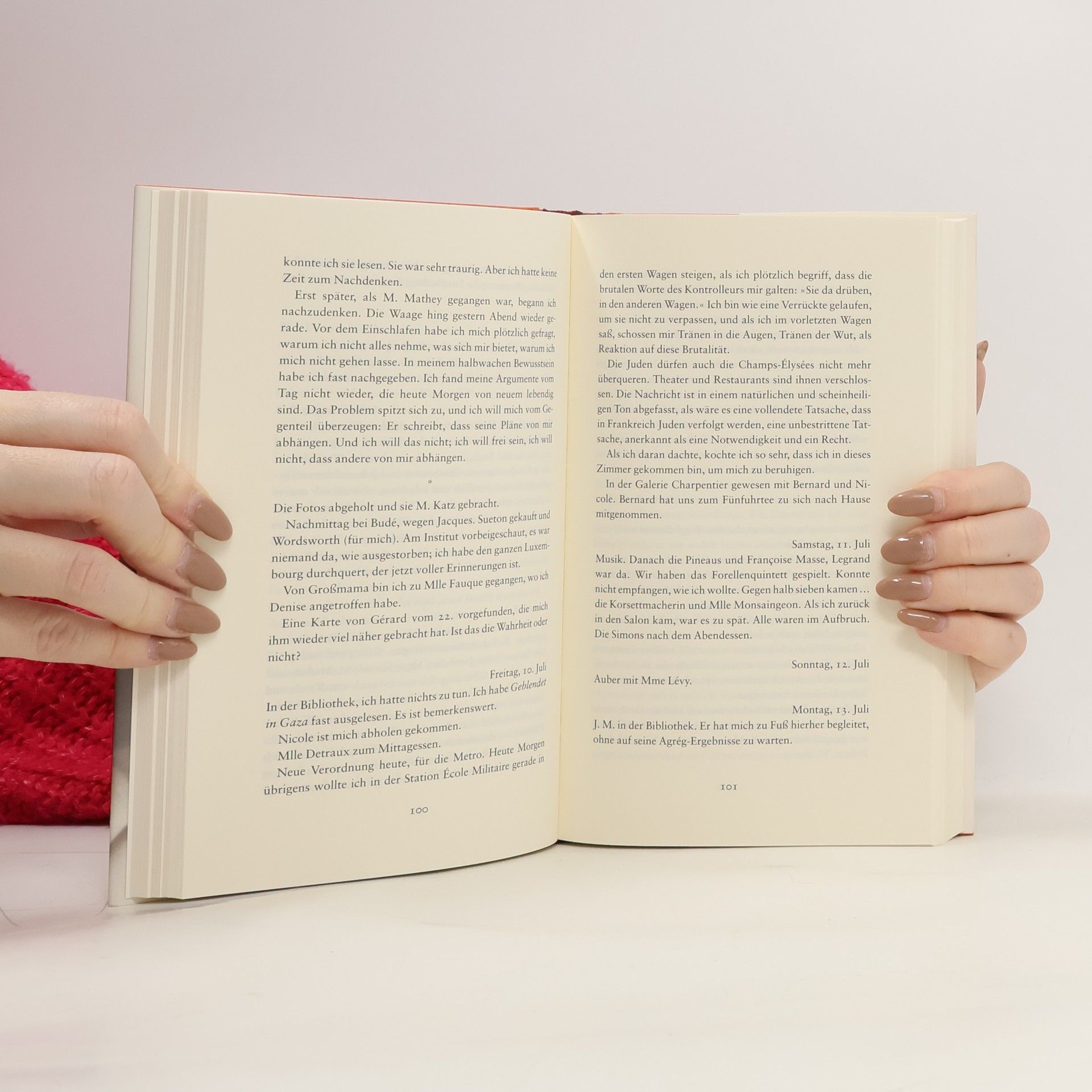 Was es bedeutet, jung zu sein in unsicherer Zeit: Noch im April 1942 beschreibt die Literaturstudentin Hélène in ihrem Tagebuch Paris als Stadt der Lebensfreude. Im Juni bereits muss sie den Judenstern tragen, ihr Vater wird festgenommen, und sie beendet ihre Aufzeichnungen. Als sie das Tagebuch 1943 wiederaufnimmt, legt sie Zeugnis ab vom grassierenden Antisemitismus und von dem Unrecht, das während der deutschen Besatzung geschieht. Hélène Berr steht internierten Juden und ihren Angehörigen bei. Sie schwebt in Gefahr, aber sie will nicht fliehen. In seinem Vorwort vergleicht Patrick Modiano Hélène Berr mit Simone Weil und Katherine Mansfield. Ihr Tagebuch gehört zu den bedeutendsten Zeugnissen der Shoa in Frankreich.