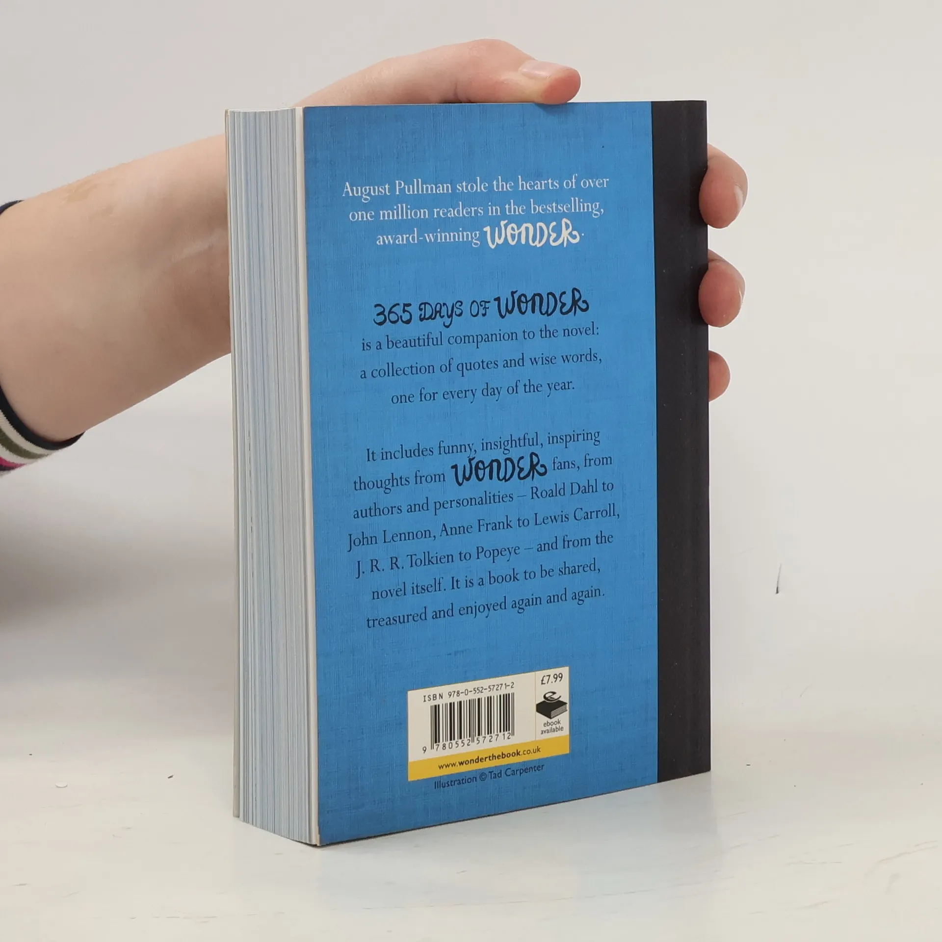August Pullman stole the hearts of over a million readers in the bestselling, award-winning WONDER. 365 DAYS OF WONDER is a beautiful companion to the novel: a collection of quotes and wise words, one for every day of the year. It includes funny, insightful, inspiring thoughts from WONDER's fans, famous authors and personalities - from Roald Dahl and Paul McCartney to Anne Frank, Tolkien and Popeye - and from the novel itself. It's the perfect gift for anyone who loved WONDER, and it's a book to be treasured and enjoyed again and again.
