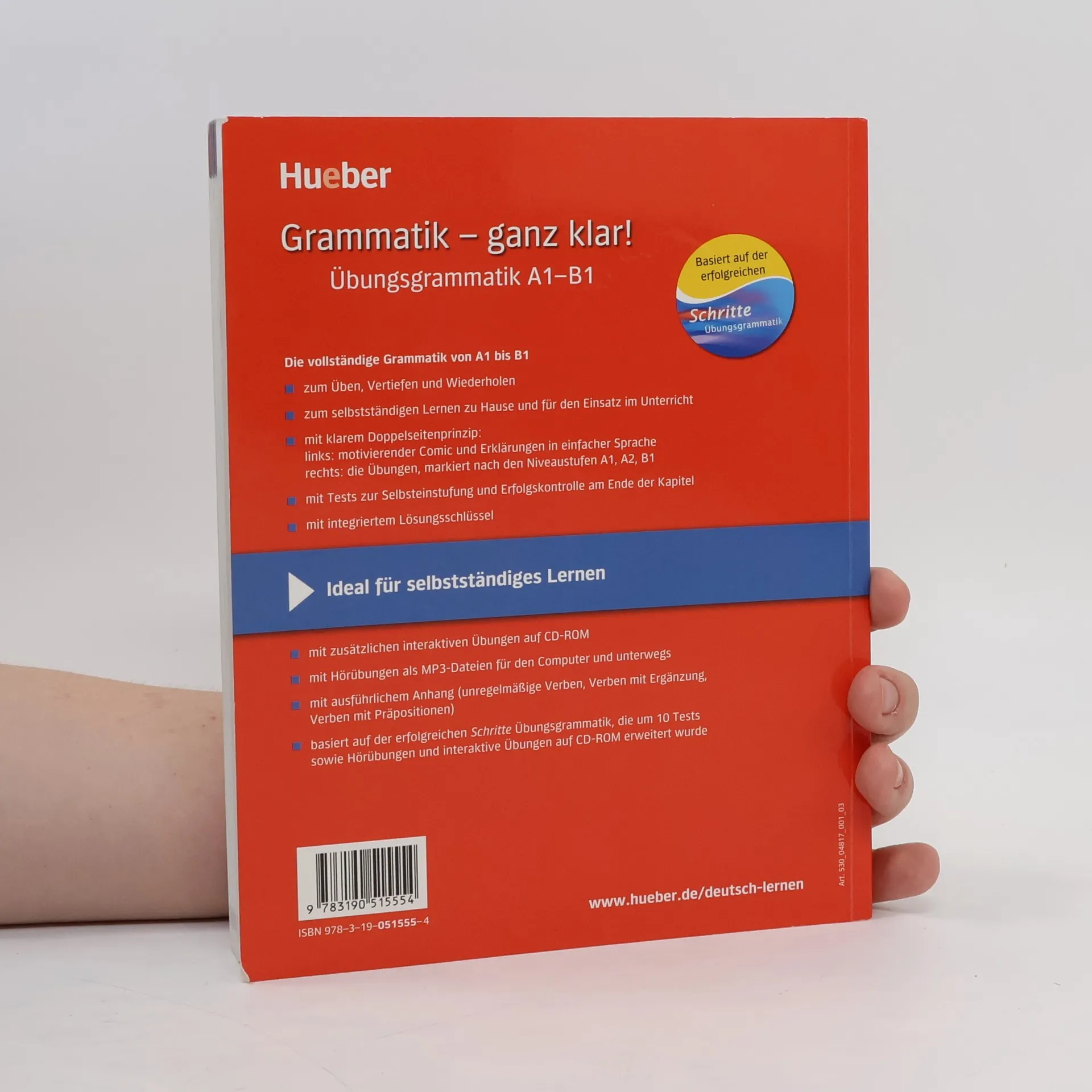 Niveau A1 bis B1 Zielgruppe: Lernende der Niveaustufen A1–B1 Grammatik – ganz klar! basiert auf der Schritte Übungsgrammatik und bietet den Lernern mit dem Doppelseitenprinzip die grundlegende deutsche Grammatik in übersichtlicher und klarer Form: links ein motivierender Comic und Erklärungen in einfacher Sprache – rechts nach Niveaustufen gekennzeichnete Übungen. Auf jeder Doppelseite wird auf weitere interaktive Übungen auf der integrierten CD-ROM verwiesen. Die Hörübungen auf der CD-ROM helfen bei der Kontrolle der Übungen im Buch und beim Einschleifen schwieriger grammatikalischer Phänomene. Der Lernerfolg kann außerdem nach jedem Kapitel in Selbsttests überprüft werden. Die Grammatik eignet sich durch den integrierten Lösungsschlüssel und die eingelegte CD-ROM sowohl zum Selbstlernen als auch als Ergänzung im Unterricht. Bei der Installation kann es zu der Fehlermeldung Installationsdatei beschädigt kommen. Tausende Softwareprodukte vieler verschiedener Hersteller sind davon betroffen. Unter https://go. hueber. de/aktuell (https://go. hueber. de/aktuell) stellen wir Ihnen für unsere Produkte ein Update bereit, das den Fehler behebt.