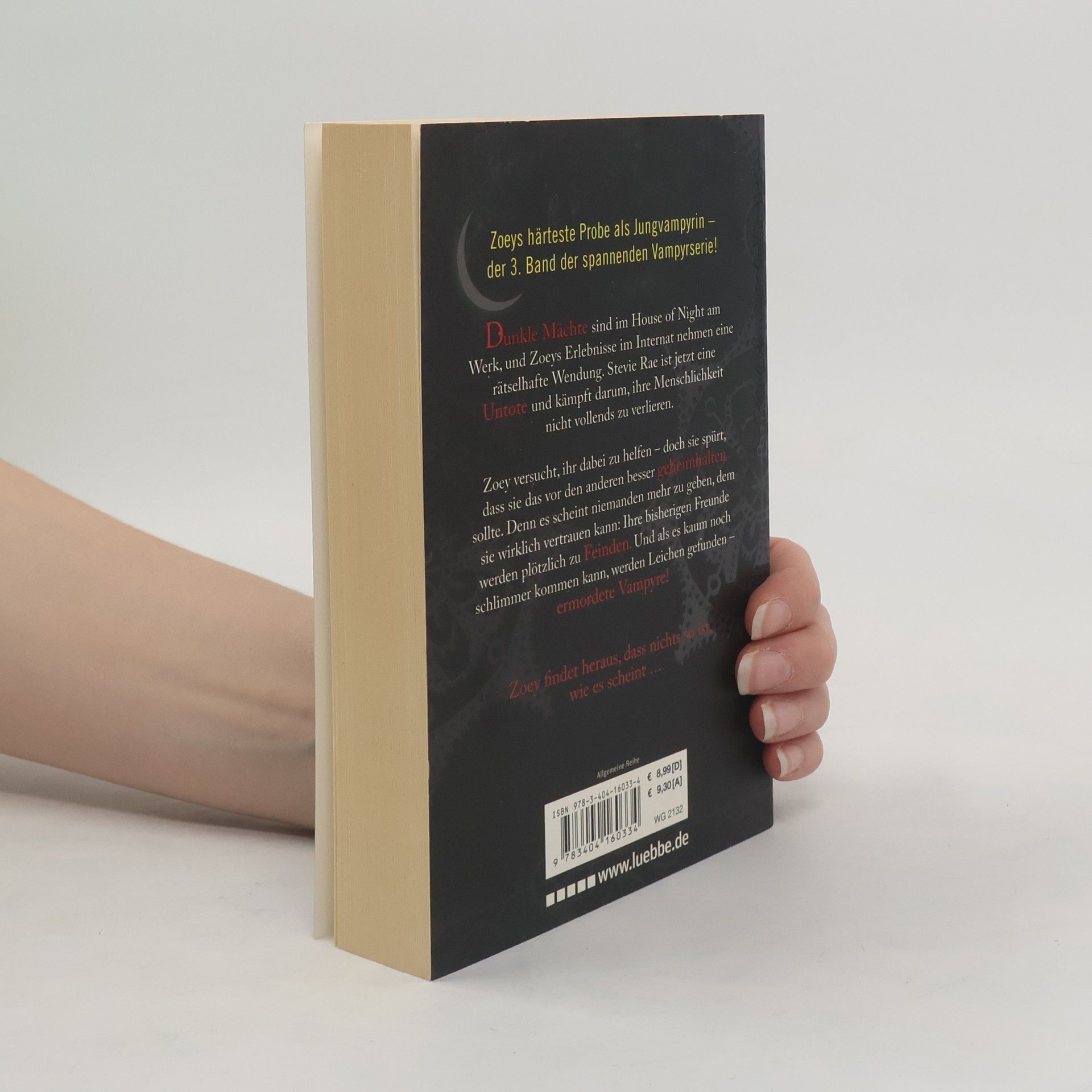 Dunkle Mächte sind im House of Night am Werk, und Zoeys Erlebnisse im Internat nehmen eine rätselhafte Wendung. Stevie Rae ist jetzt eine Untote und kämpft darum, ihre Menschlichkeit nicht vollends zu verlieren. Zoey versucht, ihr dabei zu helfen - doch sie spürt, dass sie das vor den anderen besser geheimhalten sollte. Denn es scheint niemanden mehr zu geben, dem sie wirklich vertrauen kann: Ihre bisherigen Freunde werden plötzlich zu Feinden. Und als es kaum noch schlimmer kommen kann, werden Leichen gefunden - ermordete Vampyre! Zoey findet heraus, dass nichts so ist, wie es scheint ...