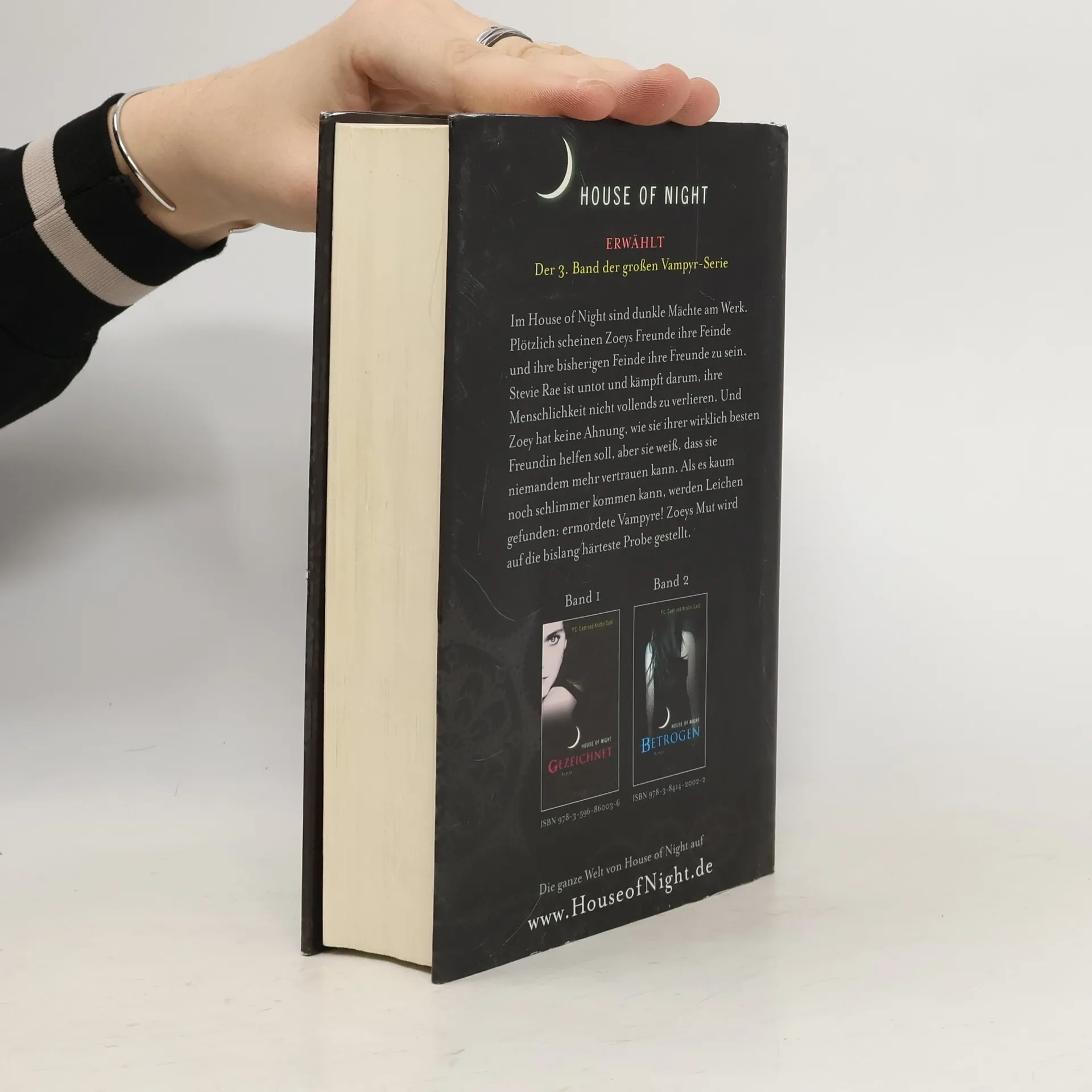 House of Night ERWÄHLTDer 3. Band der großen Vampyr-Serie. Dunkle Mächte sind im House of Night am Werk und Zoeys Erlebnisse im Internat nehmen eine rätselhafte Wendung. Zoeys beste Freundin Stevie Rae ist untot und versucht mit aller Macht, ihre Menschlichkeit nicht vollends zu verlieren. Und Zoey hat keine Ahnung, wie sie ihr dabei helfen kann, aber sie spürt, dass alles, was sie und Stevie Rae herausfinden vor den anderen im House of Night geheim gehalten werden muss. Denn plötzlich scheint es keinen mehr zu geben, dem sie wirklich vertrauen können. Als es kaum noch schlimmer kommen kann, werden Leichen gefunden: ermordete Vampyre! Aber Zoey findet heraus, dass nichts so ist wie es scheint… ERWÄHLT ist der dritte Band der House of Night- Serie, in der Zoey als Jungvampyrin auf die bislang härteste Probe gestellt wird.