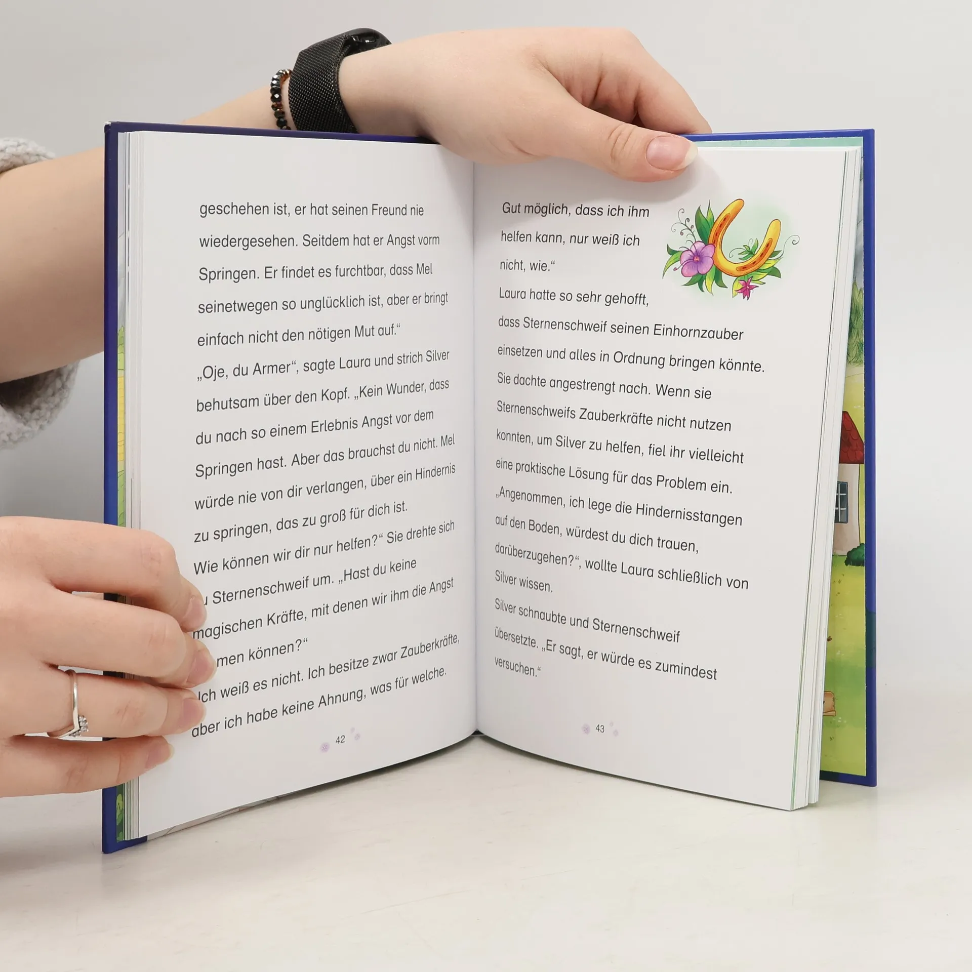 Einfach zu lesen– mit vielen farbigen Bildern – immer magisch! Zum Vorlesen und Selberlesen ab 7 Jahren. Beliebtes Thema Einhorn. Magische Geschichten, die die Fantasie anregen. Leicht lesbar durch Fibelschrift und einfache Sätze. Motiviert Leseanfänger. Stärkt die Lesekompetenz. Laura hat ein wunderbares Geheimnis: Ihr Pony Sternenschweif ist in Wirklichkeit ein Einhorn! Zusammen erleben die beiden Freunde viele magische Abenteuer. Laura lernt in der Schule Mel kennen. Die beiden Mädchen freunden sich an und das Coolste ist: Mel hat auch ein eigenes Pony. Doch Mels Pony Silver traut sich einfach nicht über Hindernisse zu springen. Wird es Laura und Sternenschweif gelingen, Silver Mut zu machen? Die Erfolgsreihe Sternenschweif: die perfekte Kombination aus Pferdegeschichte und Einhornabenteuer.