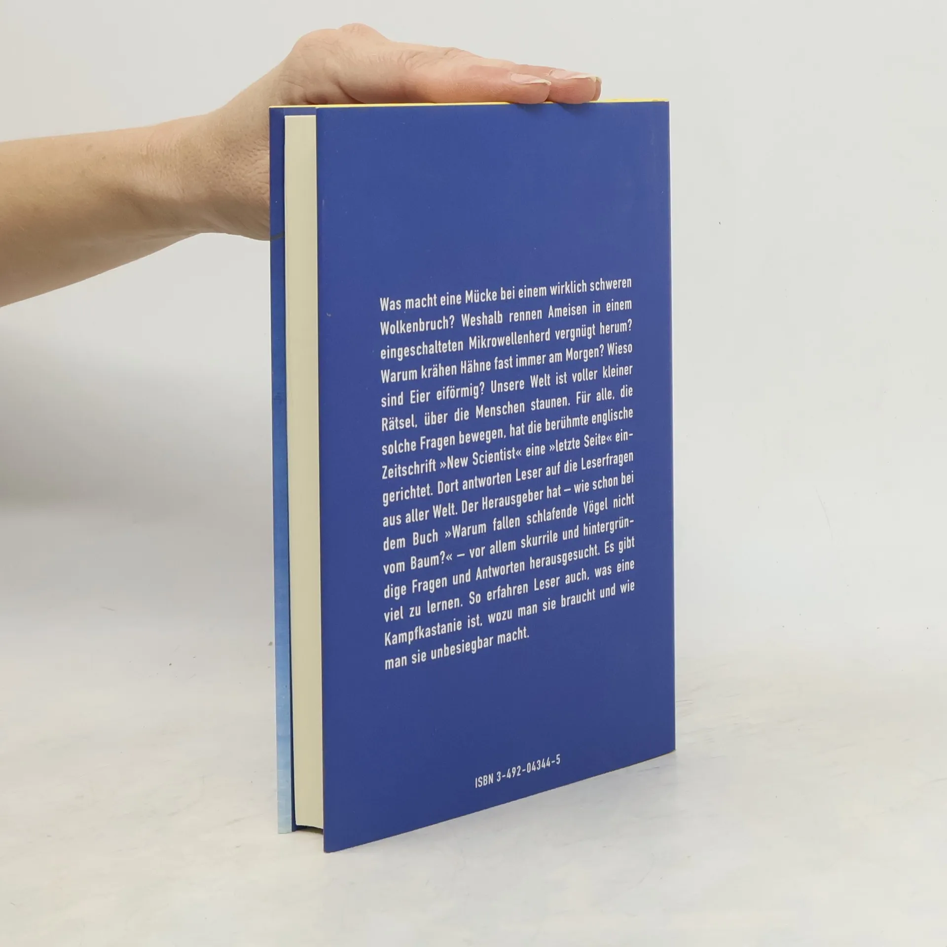 Was macht eine Mücke bei einem wirklich schweren Wolkenbruch? Warum krähen Hähne fast immer am Morgen? Und wieso sind Eier eiförmig? Unsere Welt ist voller kleiner Rätsel, über die die Menschen staunen. Für alle, die solche Fragen bewegen, hat die berühmte englische Zeitschrift "The Scientist" eine Seite eingerichtet. Dort antworten Leser auf Leserfragen aus aller Welt. Der Herausgeber hat die skurrilsten und hintergründigsten Fragen und Antworten herausgesucht. Es gibt jede Menge zu staunen und zu lernen!