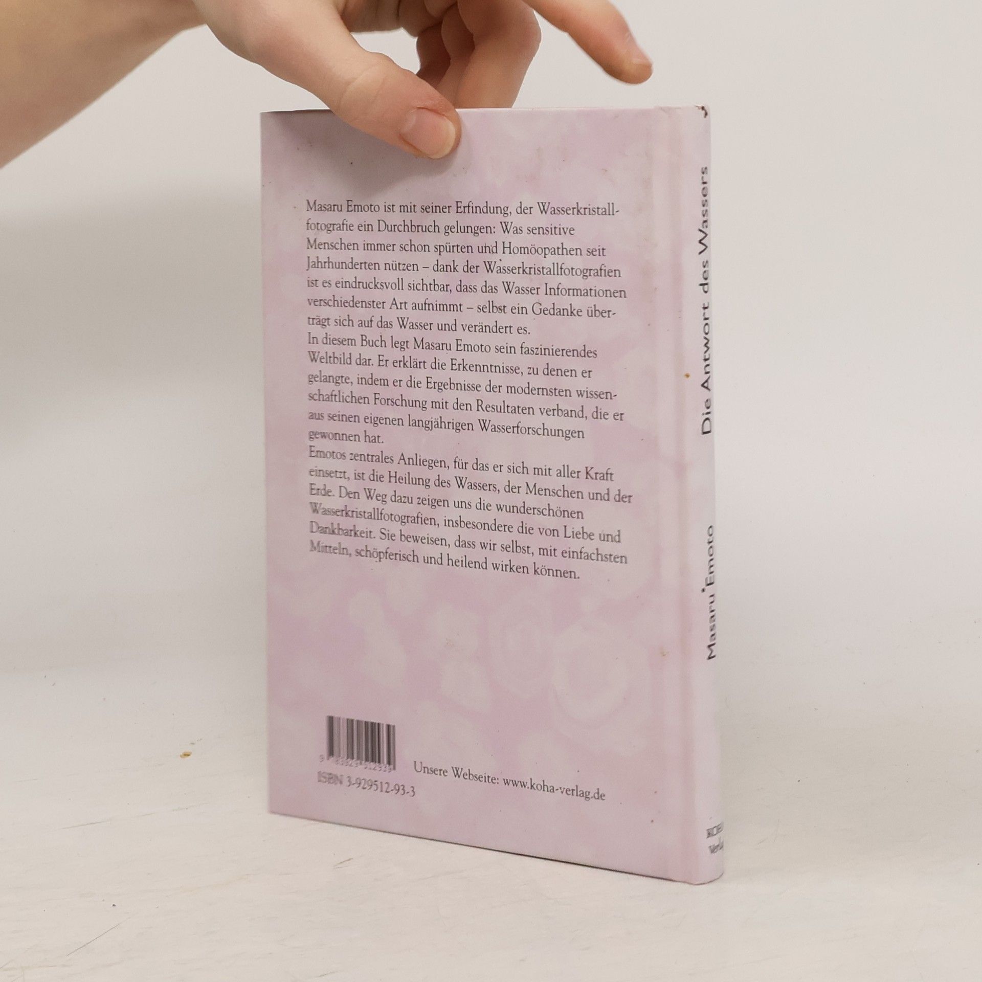 Das Wasser ist der Spiegel des Herzens. Das Wasser hat verschiedene Facetten; es verleiht dem menschlichen Bewusstsein eine Form und zeigt sie uns. Warum rückt wohl das Wasser das Herz des Menschen ins rechte Licht? Was ist denn eigentlich Bewusstsein? Weshalb vibriert alles im Universum? Warum hat alles eine eigene Wellenlänge? Dies und vieles mehr wird in diesem Buch von Dr. Masaru Emoto beantwortet und dazu werden neue Bilder aus seiner Forschungsarbeit gezeigtIn diesem Buch legt Masaru Emoto sein faszinierendes Weltbild dar. Er erklärt die Erkenntnisse, zu denen er gelangte, indem er die Ergebnisse der modernsten wissenschaftlichen Forschung mit den Resultaten verband, die er aus seinen eigenen langjährigen Wasserforschungen gewonnen hat. Emotos zentrales Anliegen, für das er sich mit aller Kraft einsetzt, ist die Heilung des Wassers, der Menschen und der Erde. Den Weg dazu zeigen uns die wunderschönen Wasserkristallfotografien, insbesondere die von Liebe und Dankbarkeit. Sie beweisen, dass wir selbst, mit einfachsten Mitteln, schöpferisch und heilend wirken können.