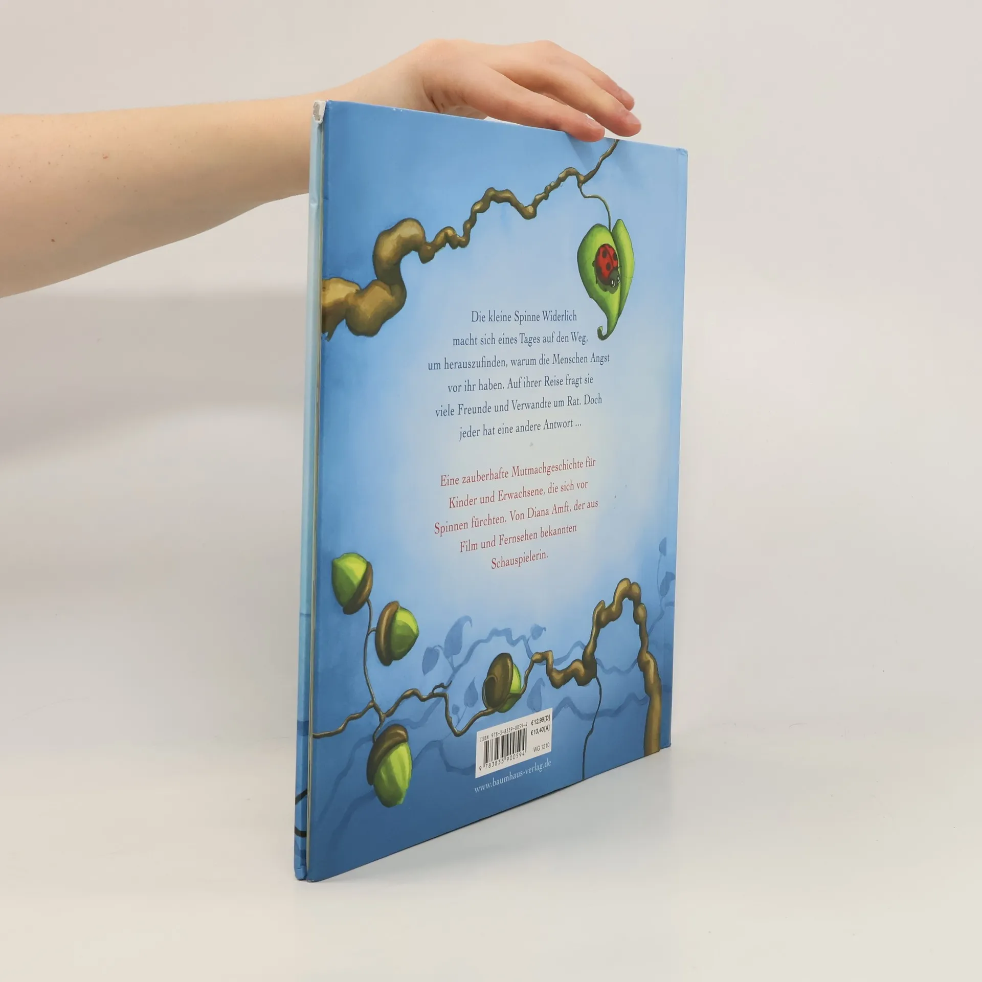 Die kleine Spinne Widerlich macht sich eines Tages auf den Weg, um herauszufinden, warum die Menschen Angst vor ihr haben. Auf ihrer Reise fragt sie viele Freunde und Verwandte um Rat, und jeder hat eine andere Antwort auf ihre Frage. Doch so nach und nach wird der kleinen Spinne eines klar: Man hat nur Angst vor Dingen, die man nicht kennt und nicht versteht. Und dagegen lässt sich etwas tun! Eine zauberhafte Mutmachgeschichte für Kinder und Erwachsene, die sich vor Spinnen fürchten. Von Diana Amft, der aus Film und Fernsehen bekannten Schauspielerin.