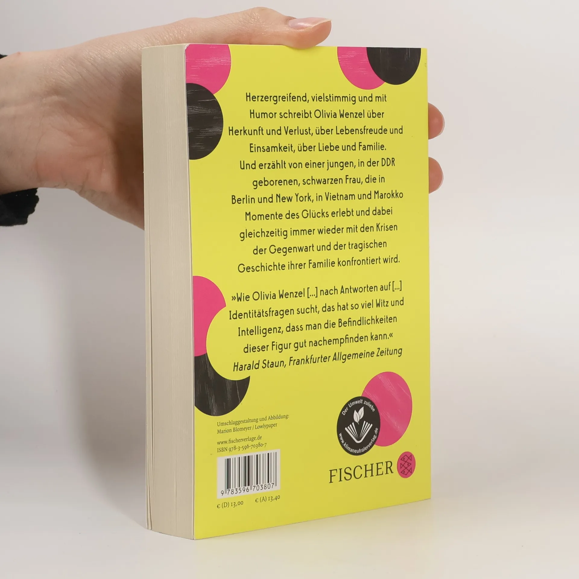 »Ich habe mehr Privilegien, als es je eine Person in meiner Familie hatte. Und trotzdem bin ich am Arsch. Ich werde von mehr Leuten gehasst, als meine Großmutter es sich vorstellen kann. Am Tag der Bundestagswahl versuche ich ihr mit dieser Behauptung 20 Minuten lang auszureden, eine rechte Partei zu wählen.« Eine junge Frau besucht ein Theaterstück über die Wende und ist die einzige schwarze Zuschauerin im Publikum. Mit ihrem Freund sitzt sie an einem Badesee in Brandenburg und sieht vier Neonazis kommen. In New York erlebt sie den Wahlsieg Trumps in einem fremden Hotelzimmer. Wütend und leidenschaftlich schaut sie auf unsere sich rasant verändernde Zeit und erzählt dabei auch die Geschichte ihrer Familie: von ihrer Mutter, die Punkerin in der DDR war und nie die Freiheit hatte, von der sie geträumt hat. Von ihrer Großmutter, deren linientreues Leben ihr Wohlstand und Sicherheit brachte. Und von ihrem Zwillingsbruder, der mit siebzehn ums Leben kam. Herzergreifend, vielstimmig und mit Humor schreibt Olivia Wenzel über Herkunft und Verlust, über Lebensfreude und Einsamkeit und über die Rollen, die von der Gesellschaft einem zugewiesen werden.