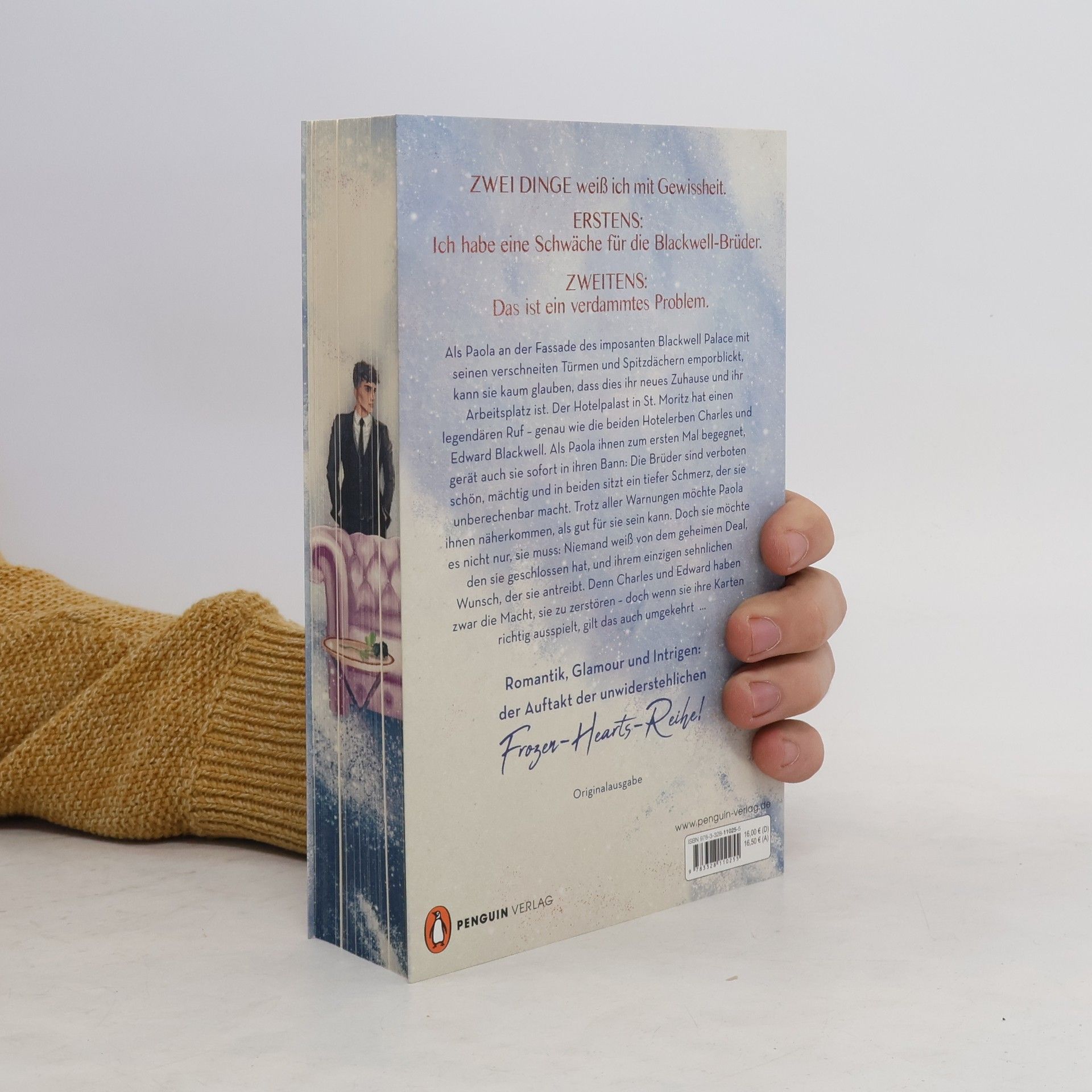 Aufwendig gestaltete und limitierte Box mit Fanartikeln zu Band 1 der neuen Reihe »Frozen Hearts« von Bestsellerautorin Ayla Dade Diese Box enthält: Exklusive Character-Cards der Protagonist*innen, eine Blackwell-Palace-Schlafmaske, eine illustrierte Karte von St. Moritz, ein Türschild, eine Hotelzimmerkarte mit Download-Code des digitalen Hörbuchs und einen persönlichen und signierten Brief der Autorin Zum Hörbuch: Als Paola an der Fassade des imposanten Blackwell Palace mit seinen verschneiten Türmen und Spitzendächern emporblickt, kann sie kaum glauben, dass dies ihr neues Zuhause und ihr Arbeitsplatz ist. Der Hotelpalast in St. Moritz hat einen legendären Ruf – genau wie die beiden Hotelerben Charles und Edward Blackwell. Als Paola ihnen zum ersten Mal begegnet, gerät auch sie sofort in ihren Bann: Die Brüder sind verboten schön, mächtig und in beiden sitzt ein tiefer Schmerz, der sie unberechenbar macht. Trotz aller Warnungen möchte Paola ihnen näherkommen, als gut für sie sein kann. Doch sie möchte es nicht nur, sie muss: Niemand weiß von dem geheimen Deal, den sie geschlossen hat, und ihrem einzigen sehnlichen Wunsch, der sie antreibt. Sie ist sich bewusst: Charles und Edward haben zwar die Macht, sie zu zerstören – doch wenn sie ihre Karten richtig ausspielt, gilt das auch umgekehrt … (Nur in der EU erhältlich) Maßeinheiten der Box: Klappschachtel 158 x 113 x 26 mm