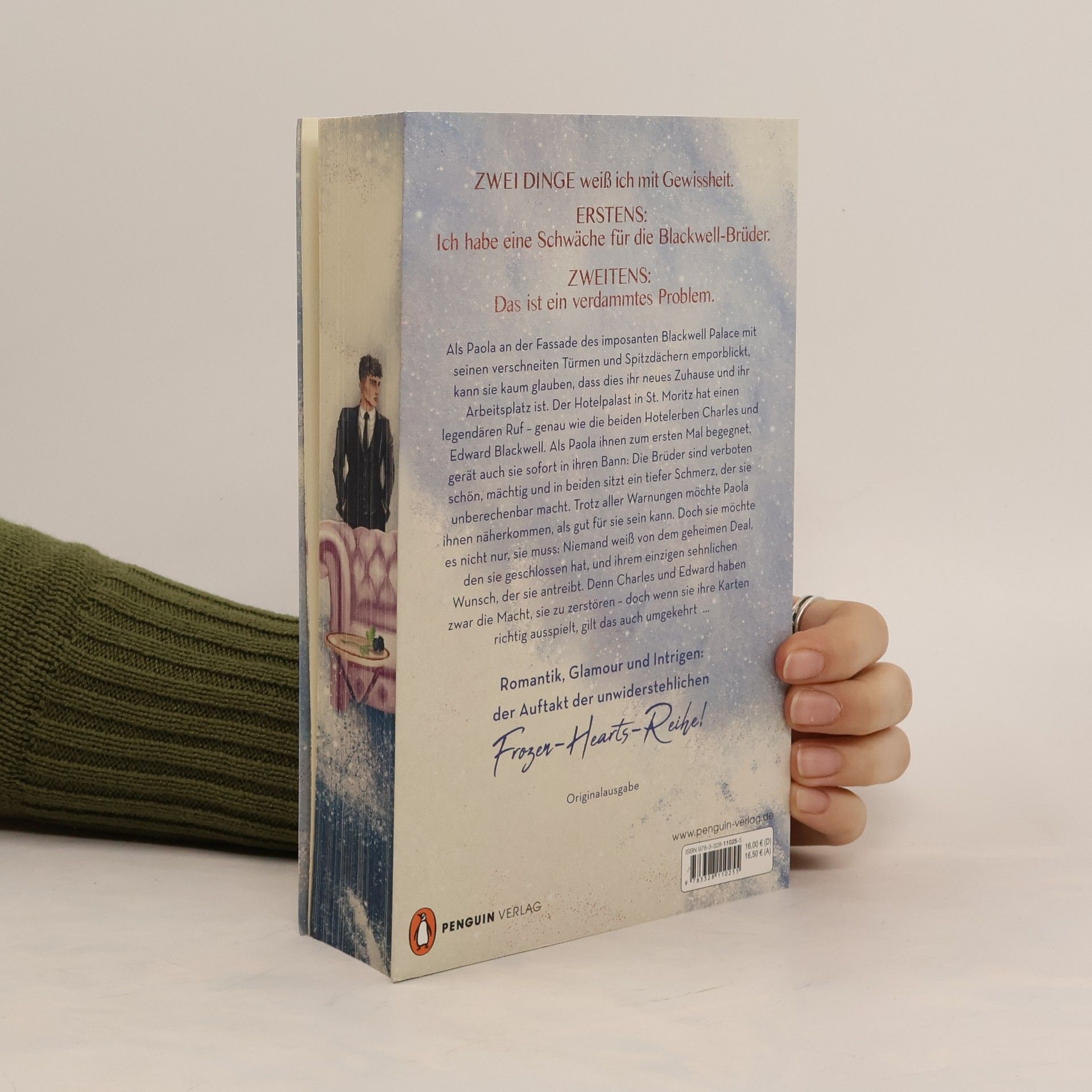 Aufwendig gestaltete und limitierte Box mit Fanartikeln zu Band 1 der neuen Reihe »Frozen Hearts« von Bestsellerautorin Ayla Dade Diese Box enthält: Exklusive Character-Cards der Protagonist*innen, eine Blackwell-Palace-Schlafmaske, eine illustrierte Karte von St. Moritz, ein Türschild, eine Hotelzimmerkarte mit Download-Code des digitalen Hörbuchs und einen persönlichen und signierten Brief der Autorin Zum Hörbuch: Als Paola an der Fassade des imposanten Blackwell Palace mit seinen verschneiten Türmen und Spitzendächern emporblickt, kann sie kaum glauben, dass dies ihr neues Zuhause und ihr Arbeitsplatz ist. Der Hotelpalast in St. Moritz hat einen legendären Ruf – genau wie die beiden Hotelerben Charles und Edward Blackwell. Als Paola ihnen zum ersten Mal begegnet, gerät auch sie sofort in ihren Bann: Die Brüder sind verboten schön, mächtig und in beiden sitzt ein tiefer Schmerz, der sie unberechenbar macht. Trotz aller Warnungen möchte Paola ihnen näherkommen, als gut für sie sein kann. Doch sie möchte es nicht nur, sie muss: Niemand weiß von dem geheimen Deal, den sie geschlossen hat, und ihrem einzigen sehnlichen Wunsch, der sie antreibt. Sie ist sich bewusst: Charles und Edward haben zwar die Macht, sie zu zerstören – doch wenn sie ihre Karten richtig ausspielt, gilt das auch umgekehrt … (Nur in der EU erhältlich) Maßeinheiten der Box: Klappschachtel 158 x 113 x 26 mm