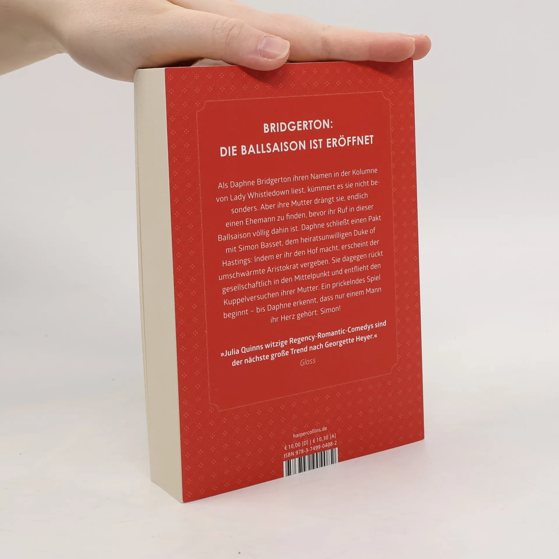 Bridgerton: Die Inspiration zur Netflix-Serie Die ganze Geschichte von Daphne und Simon – jetzt mit zusätzlichem Epilog Als Daphne Bridgerton ihren Namen in der Kolumne von Lady Whistledown liest, kümmert es sie nicht besonders. Aber ihre Mutter drängt sie, endlich einen Ehemann zu finden, bevor ihr Ruf in dieser Ballsaison völlig dahin ist. Daphne schließt einen Pakt mit Simon Basset, dem heiratsunwilligen Duke of Hastings: Indem er ihr den Hof macht, erscheint der umschwärmte Aristokrat vergeben. Sie dagegen rückt gesellschaftlich in den Mittelpunkt und entflieht den Kuppelversuchen ihrer Mutter. Ein prickelndes Spiel beginnt – bis Daphne erkennt, dass nur einem Mann ihr Herz gehört: Simon! »Julia Quinns witzige Regency-Romantic-Comedys sind der nächste große Trend nach Georgette Heyer.« Gloss »Wahrhaft die Jane Austen der Gegenwart.« Bestsellerautorin Jill Barnett