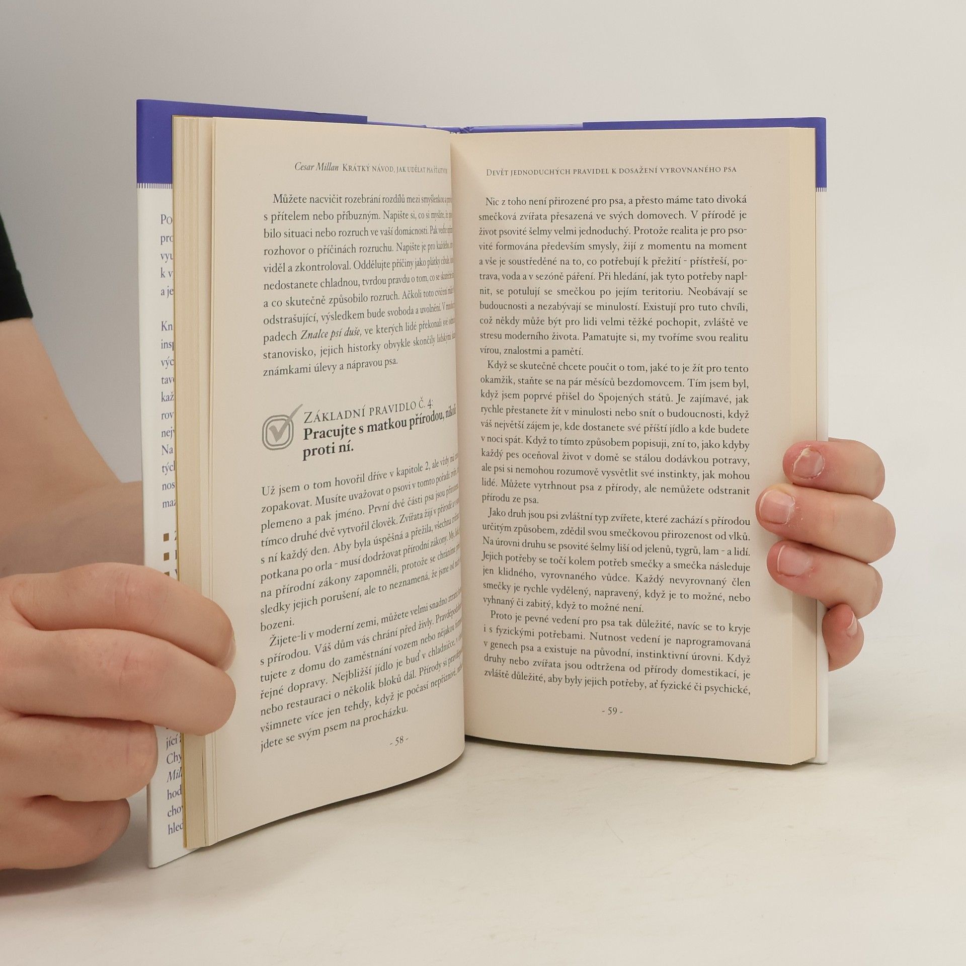 Kniha Krátký návod, jak udělat psa šťastným je jak inspirativní, tak praktická. Průvodce čerpá z tisíců výcvikových setkání po celém světě, které jsou představené do 98 základních lekcí. Společně pomohou každému majiteli používat klíčová hlediska Cesarovy proslavené filozofie, aby vytvořil svému psu co nejvíce naplněný život. Cesa bádá v životně důležitých tématech, která vedou kromě základní poslušnosti k pochopení srdce a mysli našich milovaných mazlíčků. Prozkoumává: základy psychologie psů, instinktivní chování, vytvoření vyrovnanosti a hranic, řešení běžných problémů s chováním, výběr správného psa pro vaši rodinu, pomoc psovi přizpůsobit se změnám v životě.