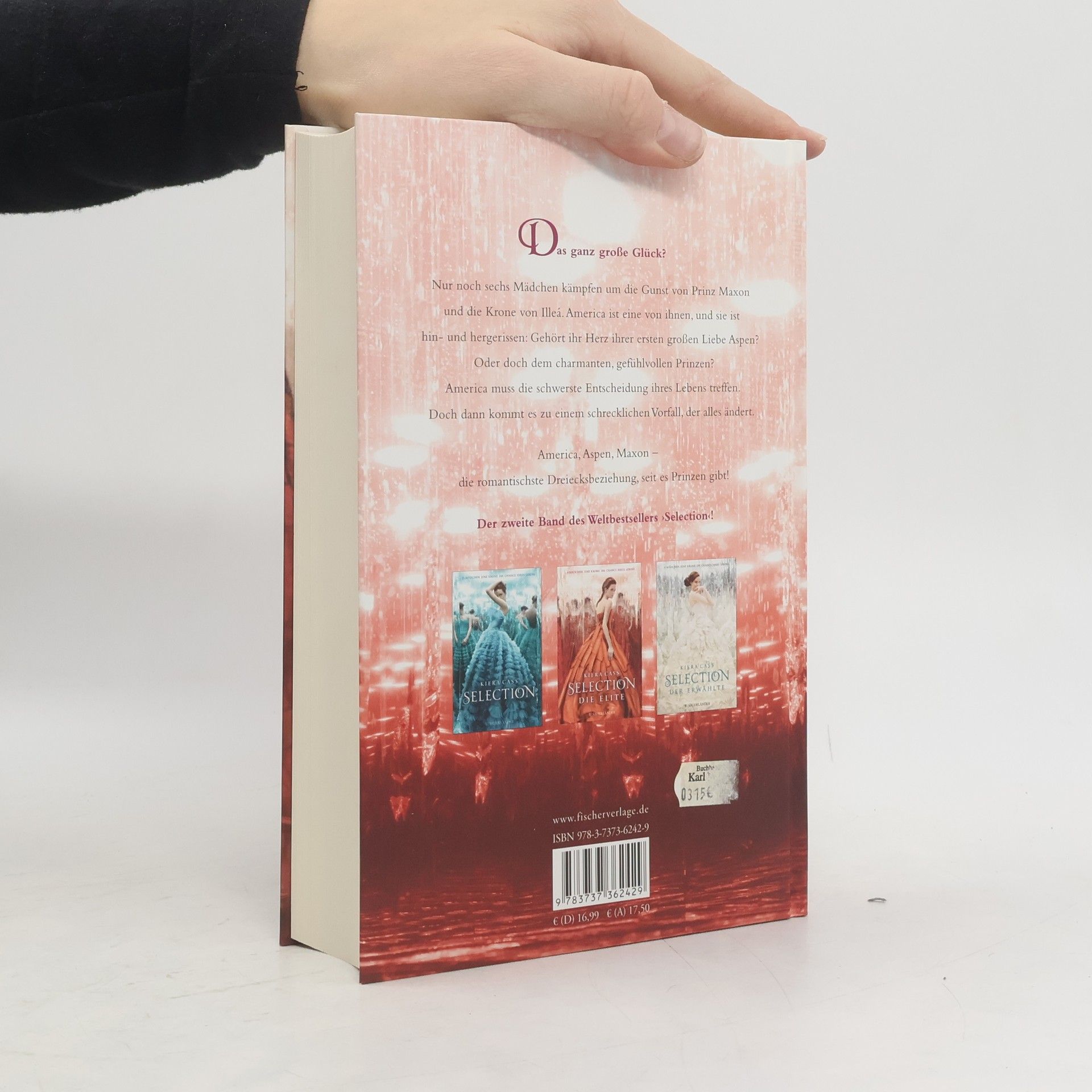 Das ganz große Glück? Von den 35 Mädchen, die um die Gunst von Prinz Maxon und die Krone von Illeá kämpfen, sind mittlerweile nur noch 6 übrig. America ist eine von ihnen, und sie ist hin- und hergerissen: Gehört ihr Herz nicht immer noch ihrer großen Liebe Aspen? Aber warum hat sich dann der charmante, gefühlvolle Prinz hineingeschlichen? America muss die schwerste Entscheidung ihres Lebens treffen. Doch dann kommt es zu einem schrecklichen Vorfall, der alles ändert.Auch im zweiten Band der ›Selection‹-Trilogie geht es um die ganz großen Gefühle! Kiera Cass versteht es meisterhaft, das im ersten Band vorgestellte Liebesdreieck noch ein bisschen verzwickter zu machen und die Leserinnen gemeinsam mit America hin- und her schwanken zu lassen: Maxon oder Aspen? Aspen oder Maxon? Endlich: Die Fortsetzung des weltweiten Bestsellers! Selection - Die Elite schoss bei Erscheinen in den USA direkt auf Platz 1 der New York Times Bestsellerliste!