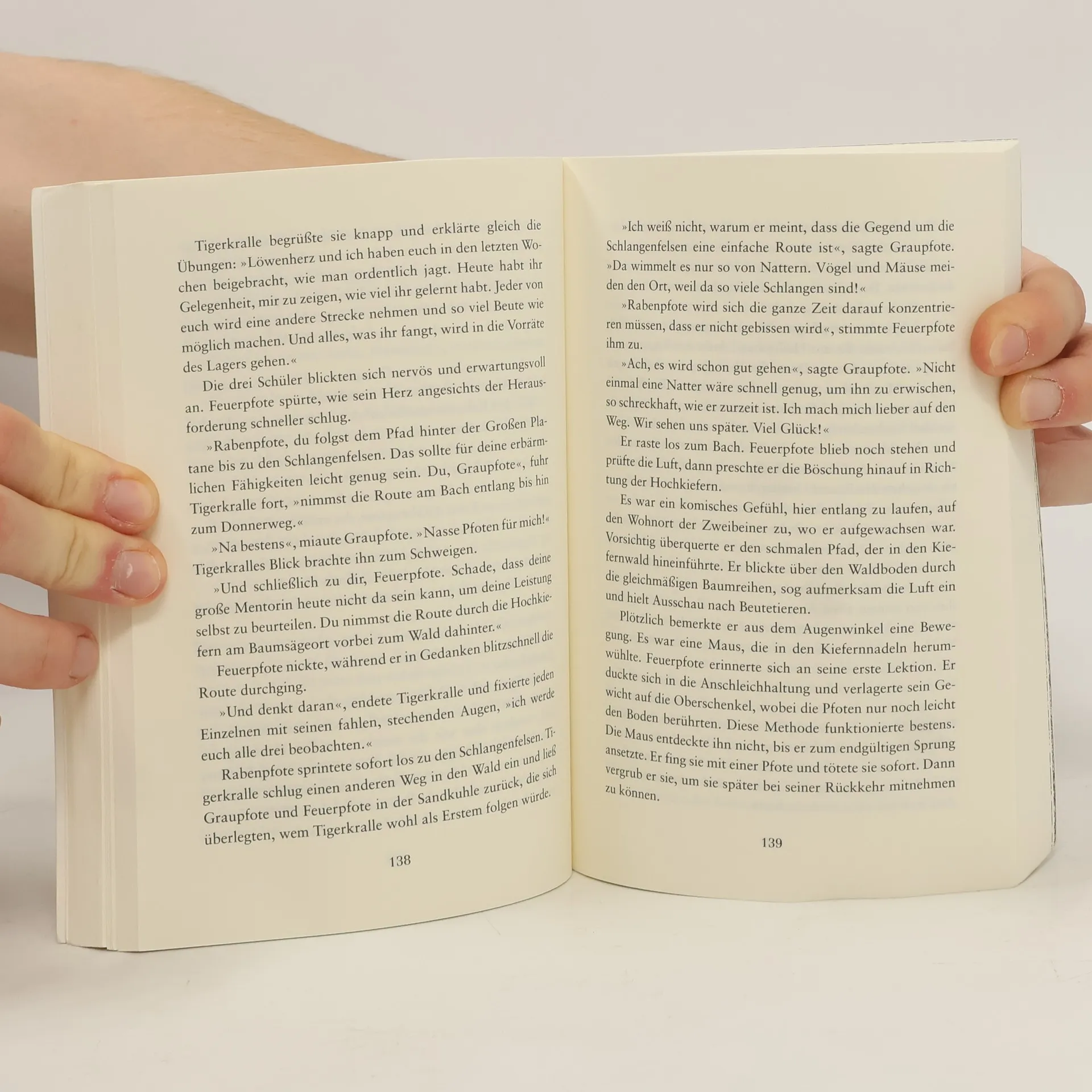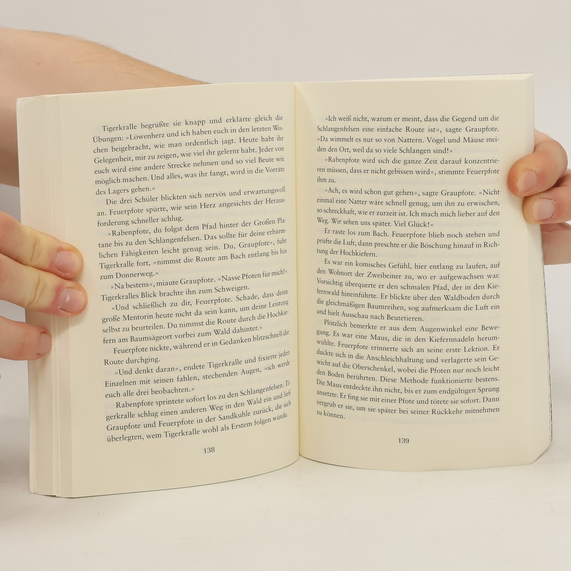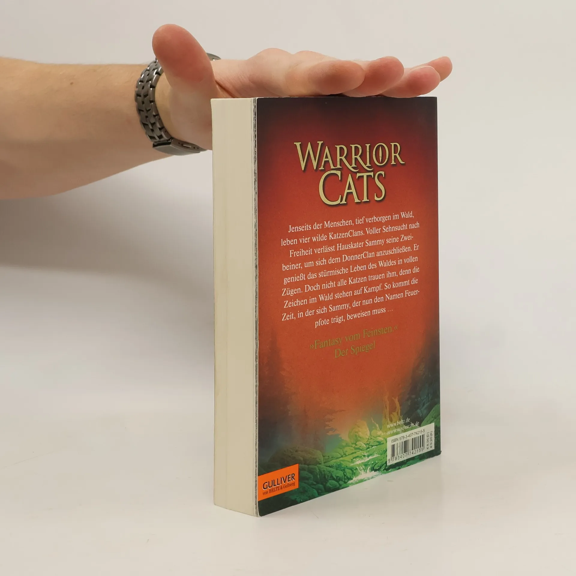 Ein Wald. Vier Clans. Und alle wollen überleben. Jenseits der Menschen, tief verborgen im Wald, leben die Katzen der Clans wild und ungezähmt. Feuerpfote, der seine Zweibeiner verließ, um sich dem DonnerClan anzuschließen, genießt das stürmische Leben des Waldes in vollen Zügen. Seite an Seite mit den wilden Katzen lernt er zu jagen, seine Instinkte zu gebrauchen, er lernt den Wald zu hören und seine Feinde zu riechen. Doch das Leben stellt ihn auch immer wieder auf die Probe, denn der Platz ist eng, das Futter knapp. Blaustern, die Anführerin des DonnerClans, hat Zweifel, ob es der Clan schaffen wird, bis zur Blattfrische zu überleben. Da erfährt Feuerpfote von der Prophezeiung: „Nur Feuer kann den Clan retten!“ Was hat diese Prophezeiung zu bedeuten?