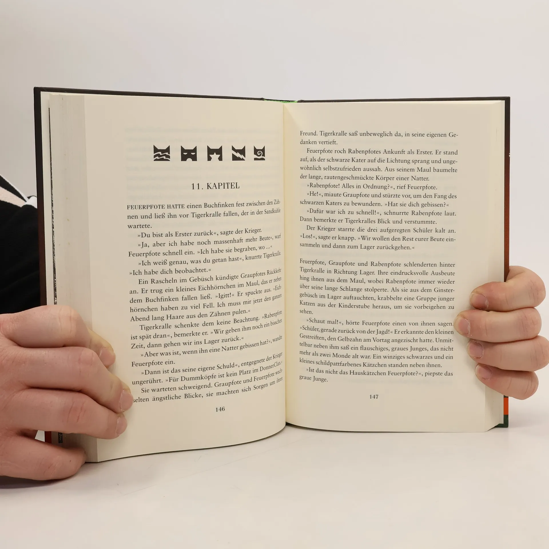Ein Wald. Vier Clans. Und alle wollen überleben. Jenseits der Menschen, tief verborgen im Wald, leben die Katzen der Clans wild und ungezähmt. Feuerpfote, der seine Zweibeiner verließ, um sich dem DonnerClan anzuschließen, genießt das stürmische Leben des Waldes in vollen Zügen. Seite an Seite mit den wilden Katzen lernt er zu jagen, seine Instinkte zu gebrauchen, er lernt den Wald zu hören und seine Feinde zu riechen. Doch das Leben stellt ihn auch immer wieder auf die Probe, denn der Platz ist eng, das Futter knapp. Blaustern, die Königin des DonnerClans, hat Zweifel, ob es der Clan schaffen wird, bis zur Blattfrische zu überleben. Da erfährt Feuerpfote von der Prophezeiung: „Nur Feuer kann den Clan retten!“ Was hat diese Prophezeiung zu bedeuten?
