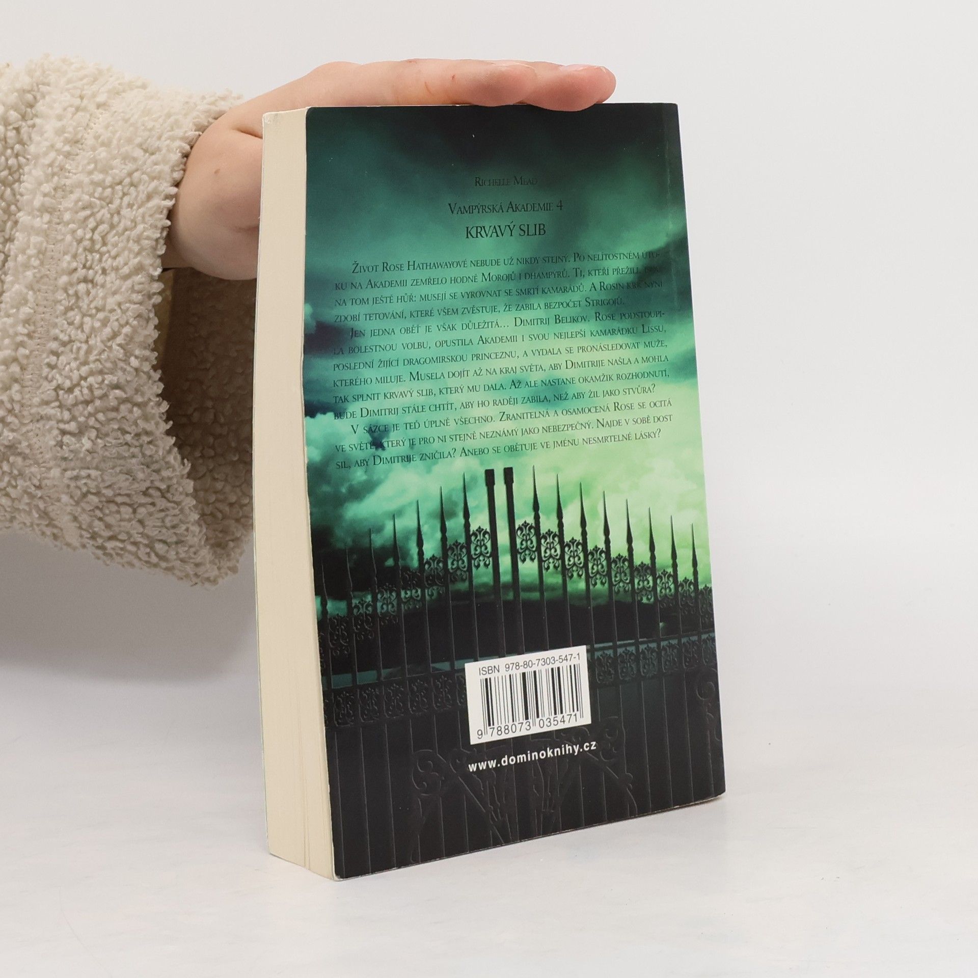 Život Rose Hathawayové nebude už nikdy stejný. Po nelítostném útoku na Akademii zemřelo hodně Morojů i dhampýrů. Ti, kteří přežili, jsou na tom ještě hůř: musejí se vyrovnat se smrtí kamarádů. A Rosin krk nyní zdobí tetování, které všem zvěstuje, že zabila bezpočet Strigojů. Jen jedna oběť je však důležitá… Dimitrij Belikov. Rose podstoupila bolestnou volbu, opustila Akademii i svou nejlepší kamarádku Lissu, poslední žijící dragomirskou princeznu, a vydala se pronásledovat muže, kterého miluje. Musela dojít až na kraj světa, aby Dimitrije našla a mohla tak splnit krvavý slib, který mu dala. Až ale nastane okamžik rozhodnutí, bude Dimitrij stále chtít, aby ho raději zabila, než aby žil jako stvůra? V sázce je teď úplně všechno. Zranitelná a osamocená Rose se ocitá ve světě, který je pro ni stejně neznámý jako nebezpečný. Najde v sobě dost sil, aby Dimitrije zničila? Anebo se obětuje ve jménu nesmrtelné lásky?