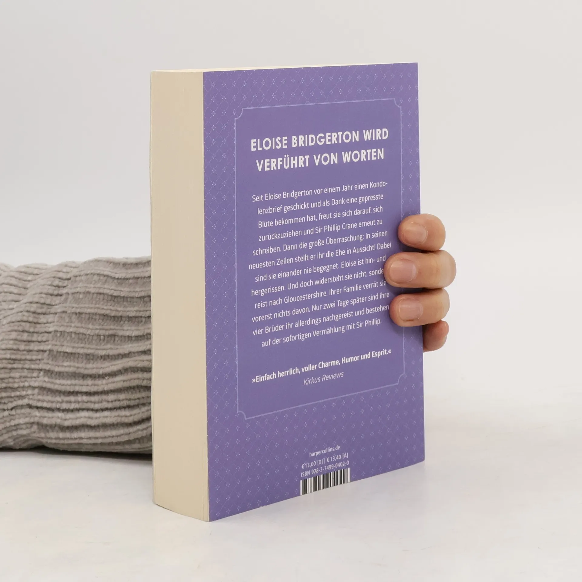 "Die Brieffreundschaft, die sich zwischen Eloise Bridgerton und Sir Phillip Crane entwickelt hat, bedeutet ihm viel. Seit seine Gattin einer schweren Krankheit erlag, sehnt er sich nach Gesellschaft. Überraschend geht eines Nachts sein Wunsch in Erfüllung, als eine Kutsche vorfährt und die Briefschreiberin aussteigt. Eloise ist bereit, auf die Avancen einzugehen, die er ihr in seinen Zeilen gemacht hat. Aber kaum hat er ihr einen ersten Kuss geraubt, erhält Phillip erneut Besuch: Eloises vier Brüder verlangen erbost, dass er ihre Schwester heiratet, jetzt, da er ihren guten Ruf in Gefahr gebracht hat" (Verlagstext). Julia Quinns Bridgerton-Romane sind die Vorlage für die derzeit erfolgreichste Netflix-Serie, die 2. Staffel ist bereits angekündigt. Daher ist auch das Interesse an den Romanen wieder gross und die Reihe wird in einem einheitlichen Design und mit einem neuen Epilog neu aufgelegt. Nach den Bänden 1 bis 3 (ID-A 50/21) erscheinen die nächsten drei Bände zeitgleich (Bände 4 und 6: ebenfalls ID-A 1/22). "Spiegel"-Bestseller.