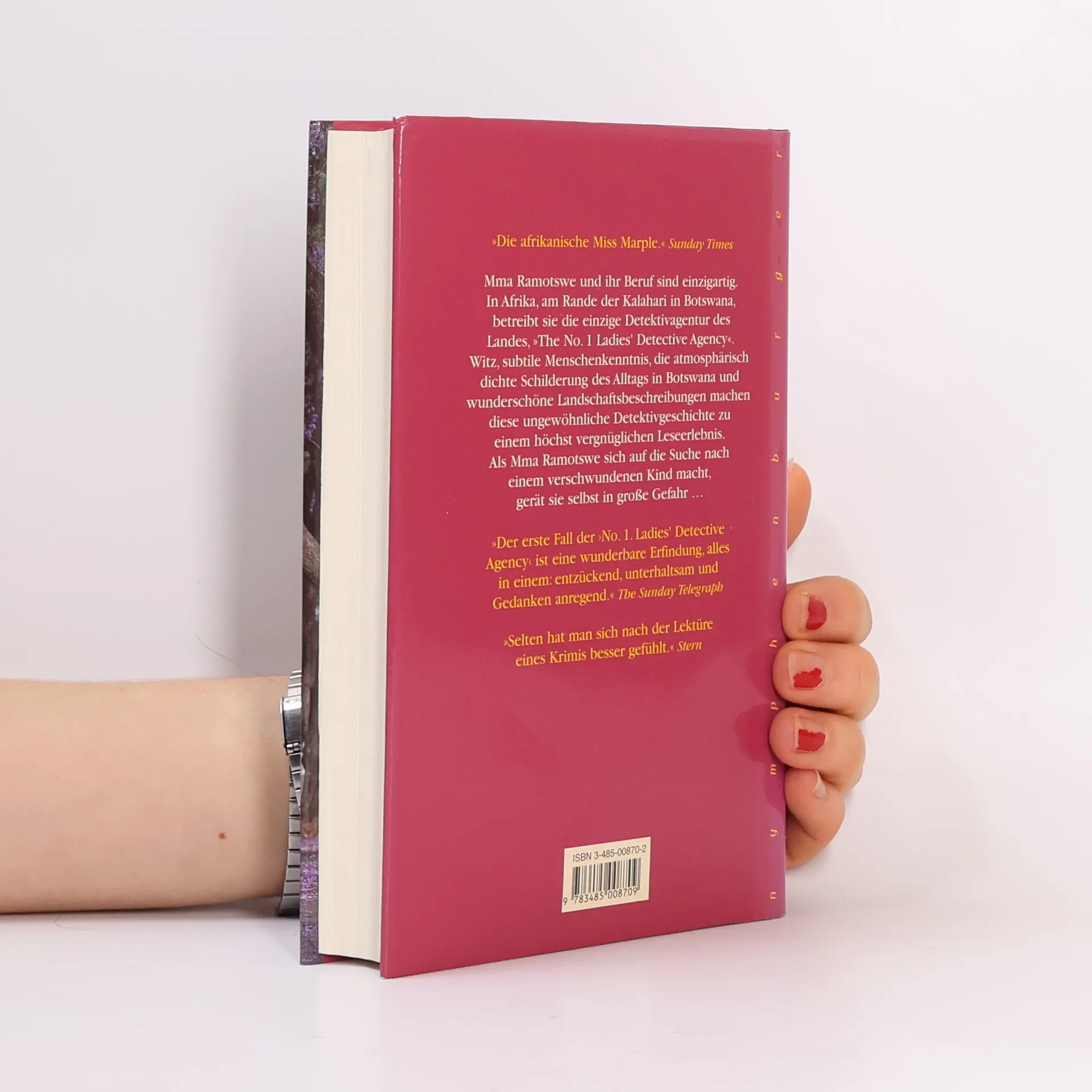 Mma Ramotswe und ihr Beruf sind einzigartig. In Afrika, am Rande der Kalahari in Botswana, betreibt sie die einzige Detektivagentur des Landes. Witz, subtile Menschenkenntnis, die atmosphärisch dichte Schilderung des Alltags in Botswana und wunderschöne Landschaftsbeschreibungen machen diese ungewöhnliche Detektivgeschichte zu einem höchst vergnüglichen Leseerlebnis.