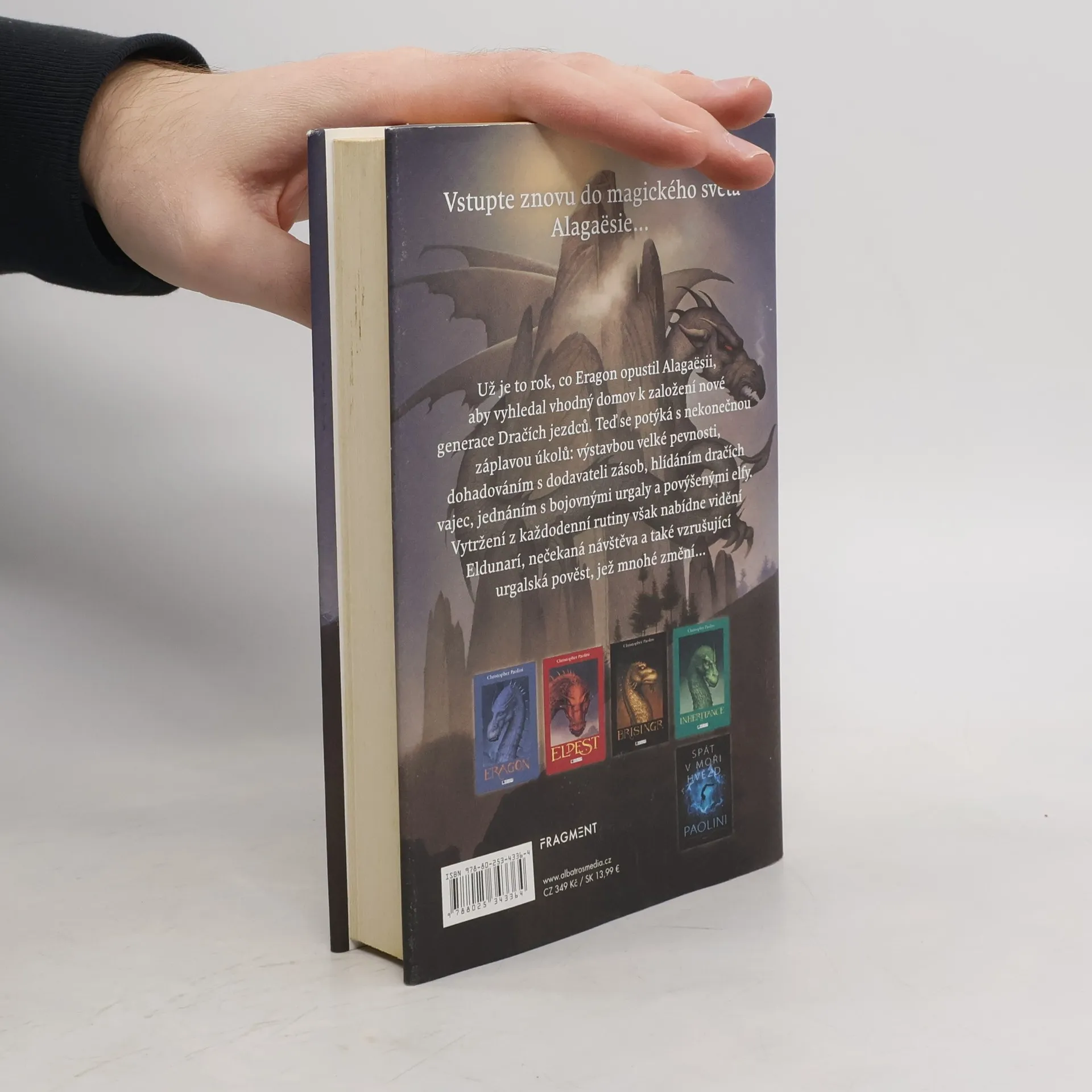Poutník a prokleté dítě. Kouzla a magie. A samozřejmě draci... Vítejte zpátky ve světě Alagaësie. Už je to rok, co Eragon opustil Alagaësii, aby vyhledal vhodný domov k založení nové generace Dračích jezdců. Teď se potýká s nekonečnou záplavou úkolů: výstavbou velké pevnosti, dohadováním s dodavateli zásob, hlídáním dračích vajec, jednáním s bojovnými urgaly a povýšenými elfy. Vytržení z každodenní rutiny však nabídne vidění Eldunarí, nečekaná návštěva a také vzrušující urgalská pověst, jež mnohé změní... Potěšte se jedinečnou fantazií Christophera Paoliniho v nové sbírce příběhů ze světa světoznámé série Odkaz Dračích jezdců. Kniha obsahuje tři nové příběhy z Alagaësie doplněné o historky z Eragonova života. Nechybí výňatek z pamětí čarodějnice a věštkyně Angely od samotné Angely Paoliniové... živoucí předlohy této nezapomenutelné postavy.