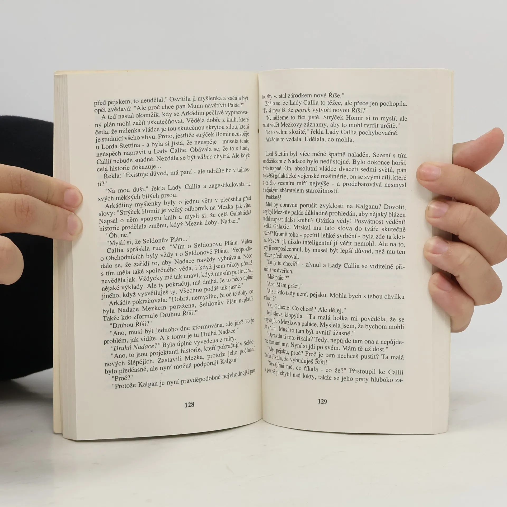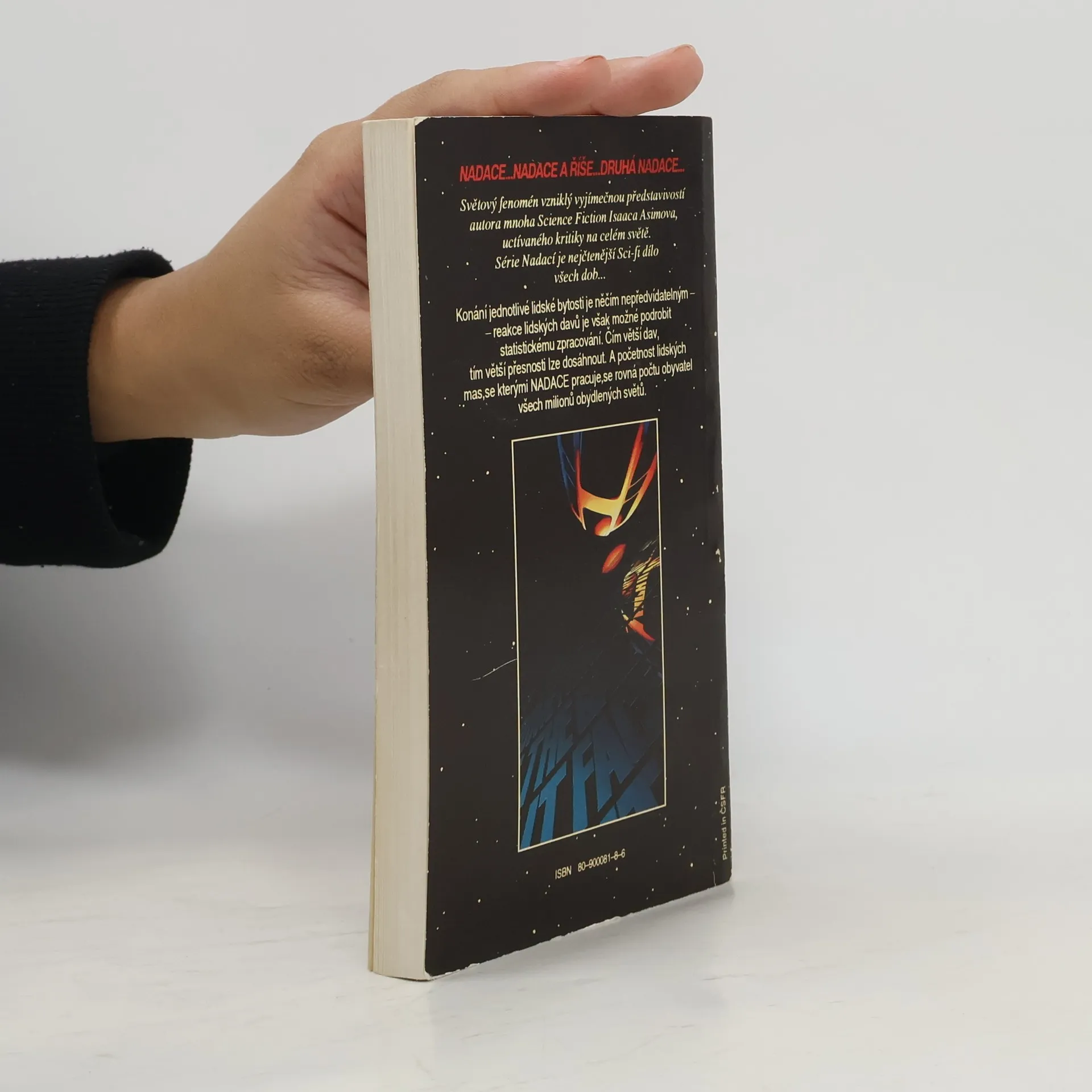Anotace: Třetí román série Nadace. Konání jednotlivé lidské bytosti je něčím nepředvídatelným – reakce lidských davů je však možné podrobit statistickému zpracování. Čím větší dav, tím větší přesnosti lze dosáhnout. A početnost lidských mas, se kterými Nadace pracuje, se rovná počtu obyvatel všech miliónů obydlených světů. Seldonův plán leží v troskách – a s ním i impérium Nadace. Na Mezka, mutanta netušených psychických schopností, nestačily ani rovnice nejnadanějšího matematika všech dob. Vše však ještě není ztraceno: kdesi na druhém konci Galaxie se skrývá Drahá Nadace, v níž se i přes dlouhá století barbarství měly zachovat veškeré vědomosti lidstva. Mezkovi se Druhou Nadaci napoprvé nepodařilo najít. Teď si je jistý, že napodruhé to již vyjde. Osud lidstva spočívá v rukou Arkadie Darellové, čtrnáctileté dívky obtížené hrozným tajemstvím. A zatímco se vědci Druhé Nadace připravují na rozhodující střetnutí s Mezkem, zástupci přemožené První Nadace se vydávají do vesmíru na beznadějnou cestu. I oni chtějí přispět ke zkáze Druhé Nadace – dřív, než ona zničí je!... celý text