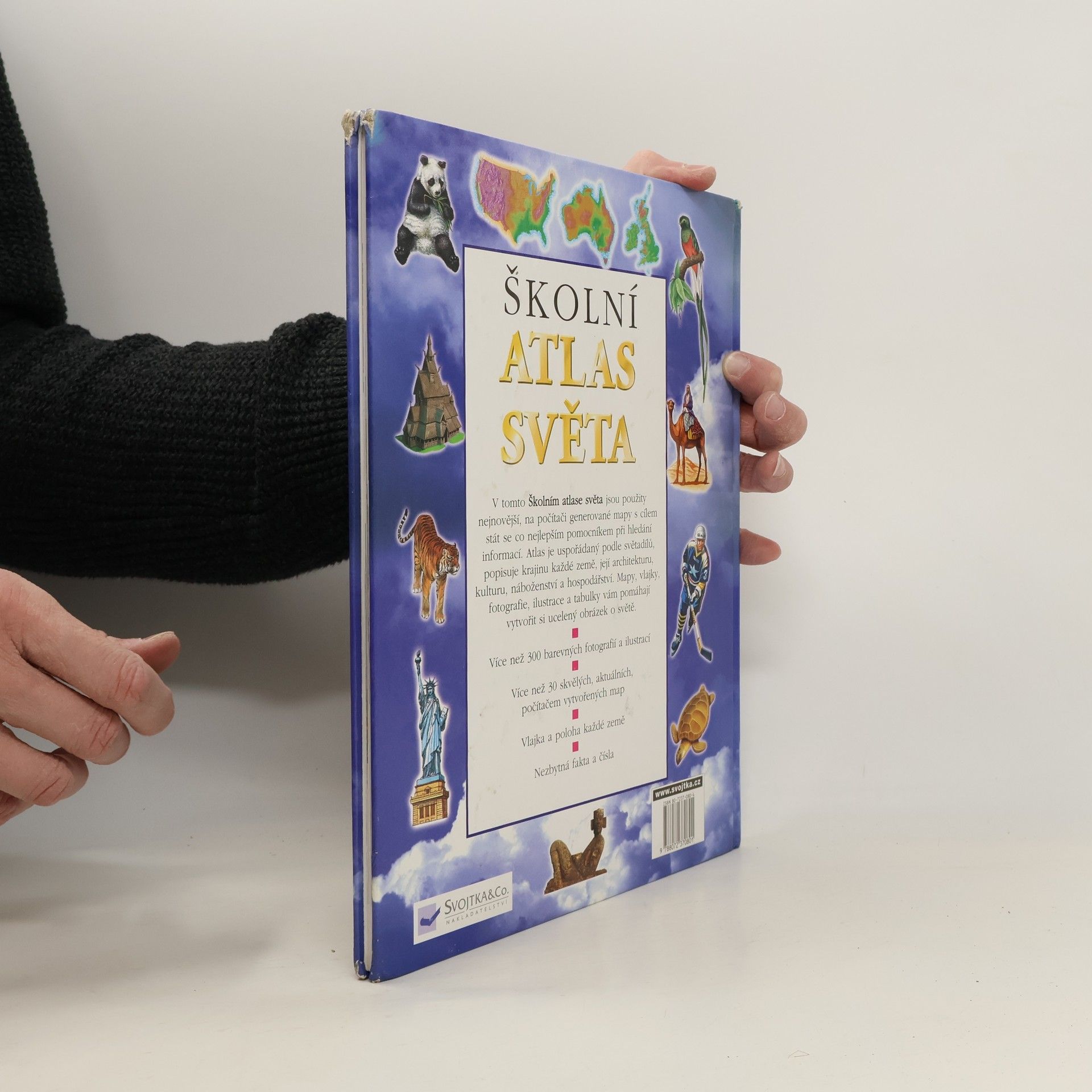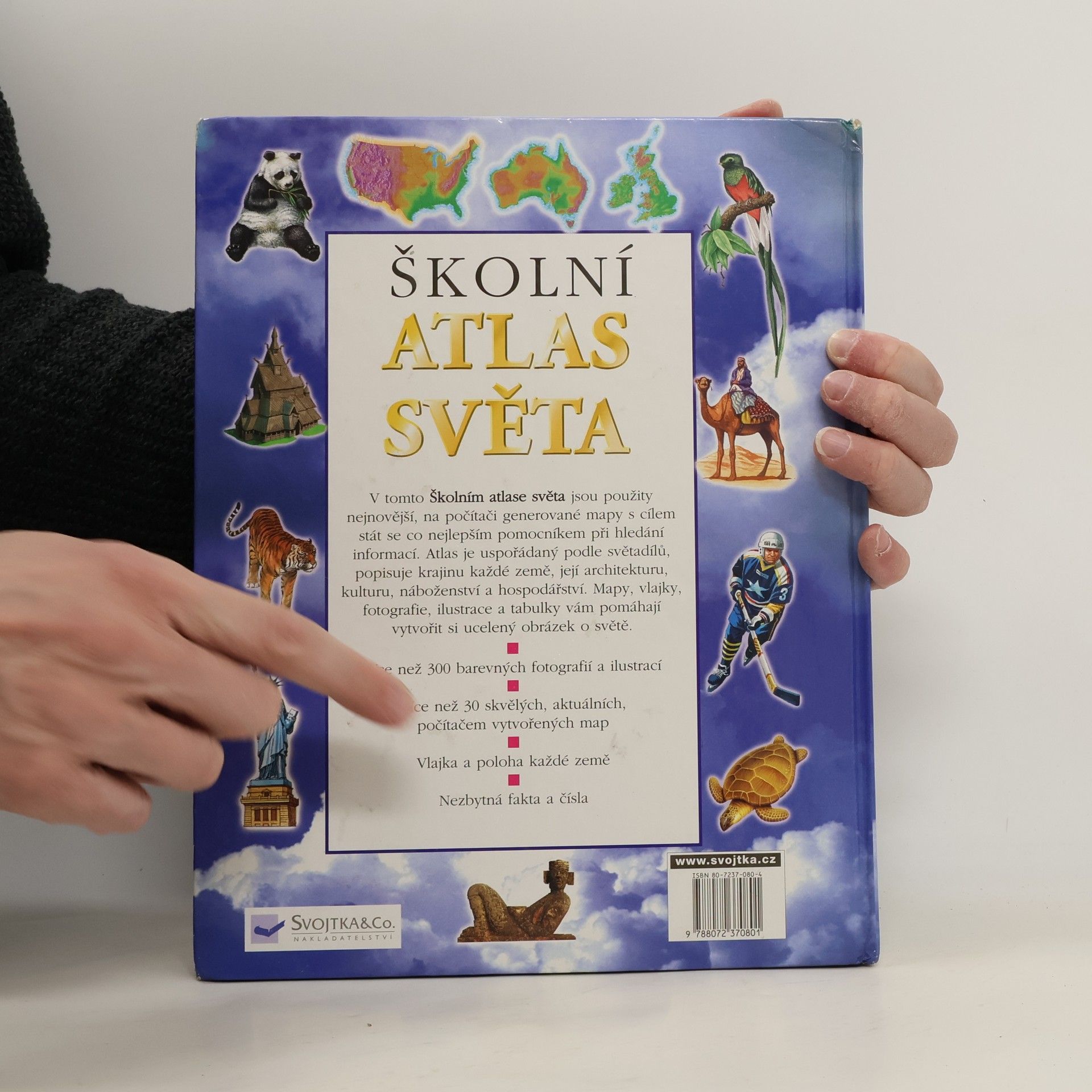 V tomto školním atlase světa jsou použity mapy s cílem stát se co nejnovějším pomocníkem při hledání informací. Atlas je uspořádaný podle světadílů, popisuje krajinu každé země, její architekturu, kulturu, náboženství a hospodářství.
