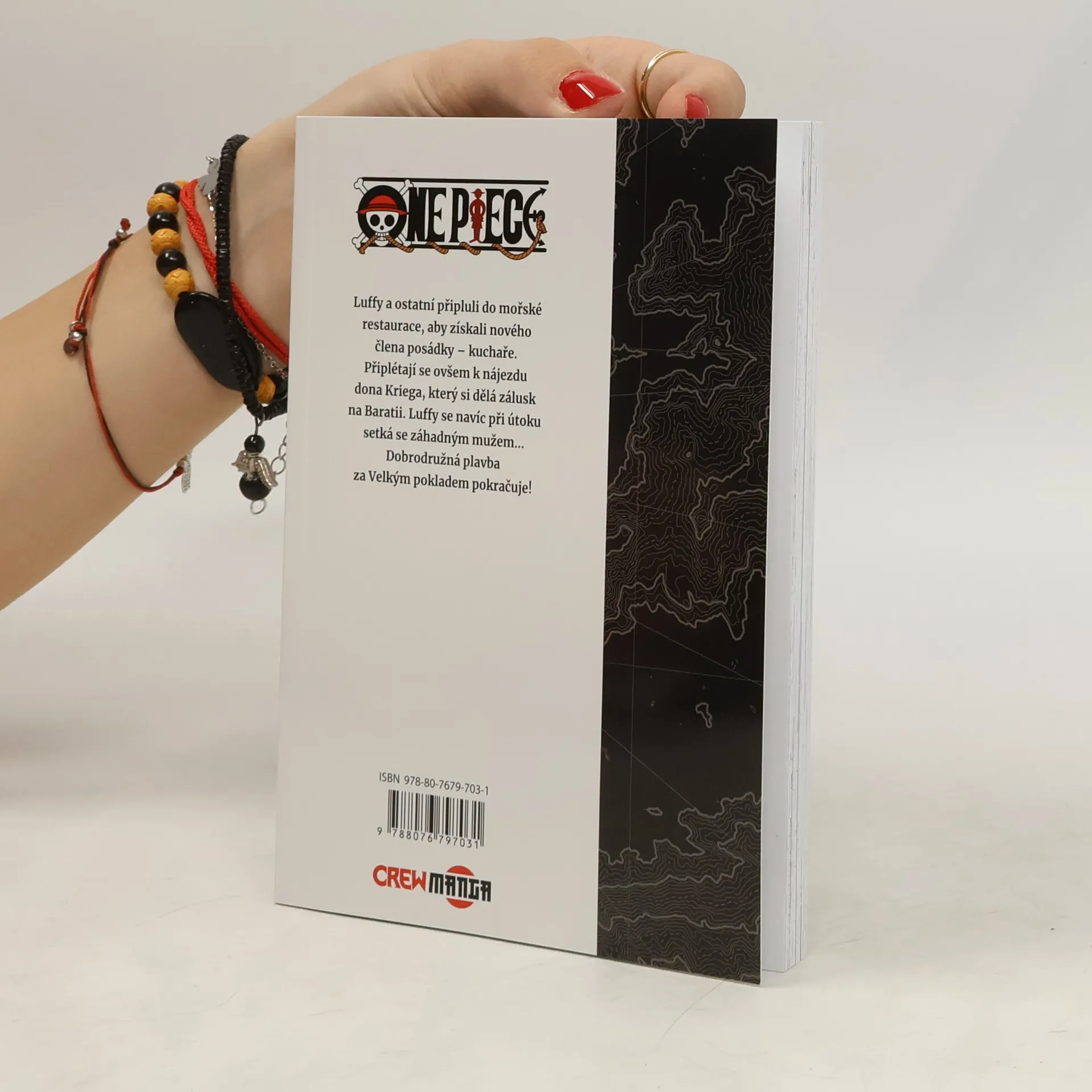 Luffy a ostatní připluli do mořské restaurace, aby získali nového člena posádky – kuchaře. Připlétají se ovšem k nájezdu dona Kriega, který si dělá zálusk na Baratii. Luffy se navíc při útoku setká se záhadným mužem… Dobrodružství za Velkým pokladem pokračuje!