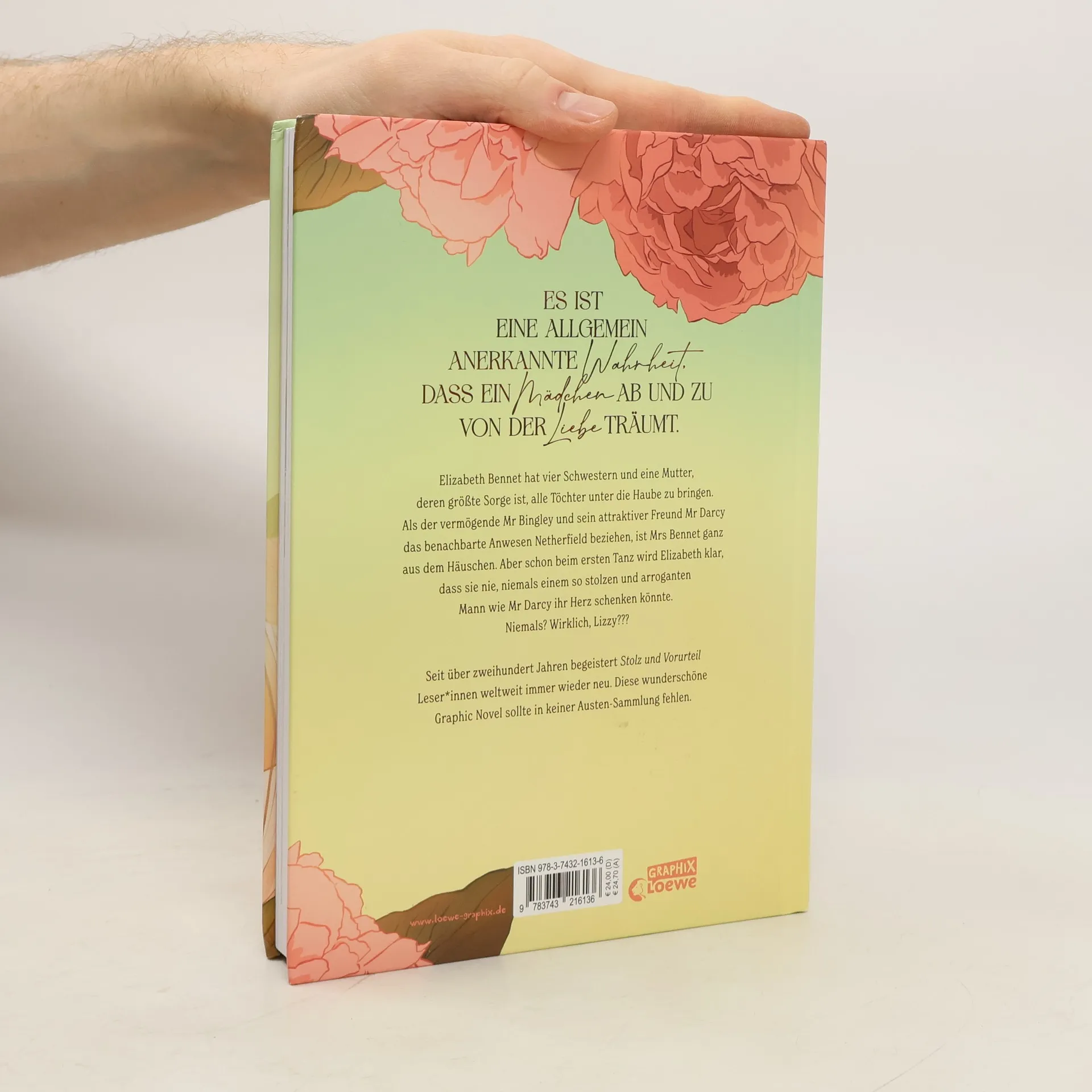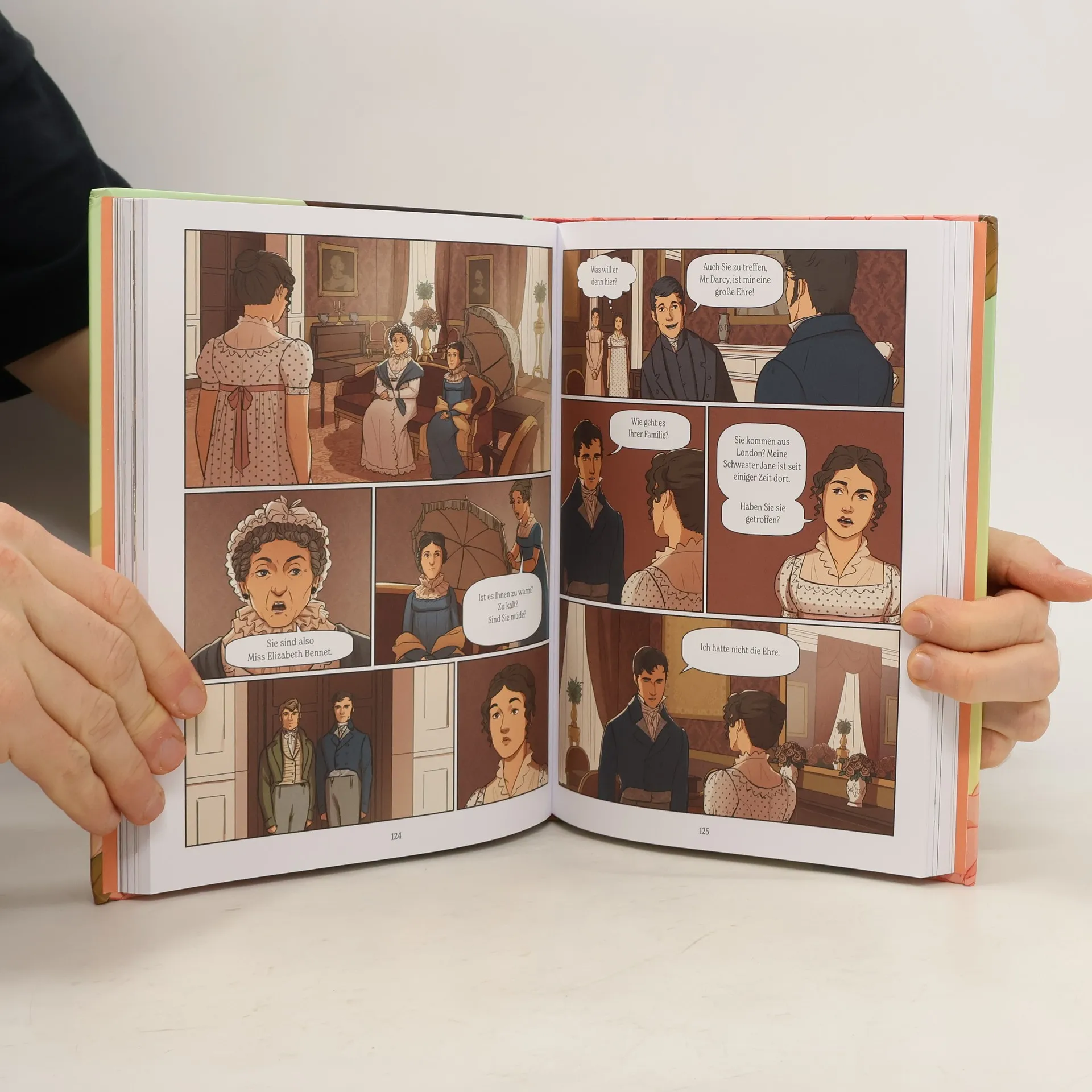 Eingestiegen auf #1 der Lovelybooks-Charts! Es ist eine allgemein anerkannte Wahrheit, dass ein Mädchen ab und zu von der Liebe träumt Elizabeth Bennet hat vier Schwestern und eine Mutter, deren größte Sorge ist, alle Töchter unter die Haube zu bringen. Als der vermögende Mr Bingley und sein attraktiver Freund Darcy das benachbarte Anwesen Netherfield beziehen, ist Mrs Bennet ganz aus dem Häuschen. Aber schon beim ersten Tanz wird Elizabeth klar, dass sie nie, niemals einem so stolzen und arroganten Mann wie Mr Darcy ihr Herz schenken könnte. Niemals? Wirklich, Lizzy??? Erlebe den Klassiker neu als hinreißende Graphic Novel Seit über zweihundert Jahren begeistert Jane Austens Stolz und Vorurteil Leserinnen weltweit immer wieder neu. Diese wunderschöne Graphic Novel sollte in keiner Austen-Sammlung fehlen. Mit ihren bezaubernden Illustrationen verwandelt Tara Spruit den zeitlosen Klassiker Stolz und Vorurteil in eine hochwertige Graphic Novel , die sich nicht nur als Geschenkausgabe für Jane Austen-Begeisterte eignet, sondern alle Regency-Fans zum Träumen einlädt. Verliebe auch du dich unwiederbringlich in den ultimativen Book Boyfriend Darcy!