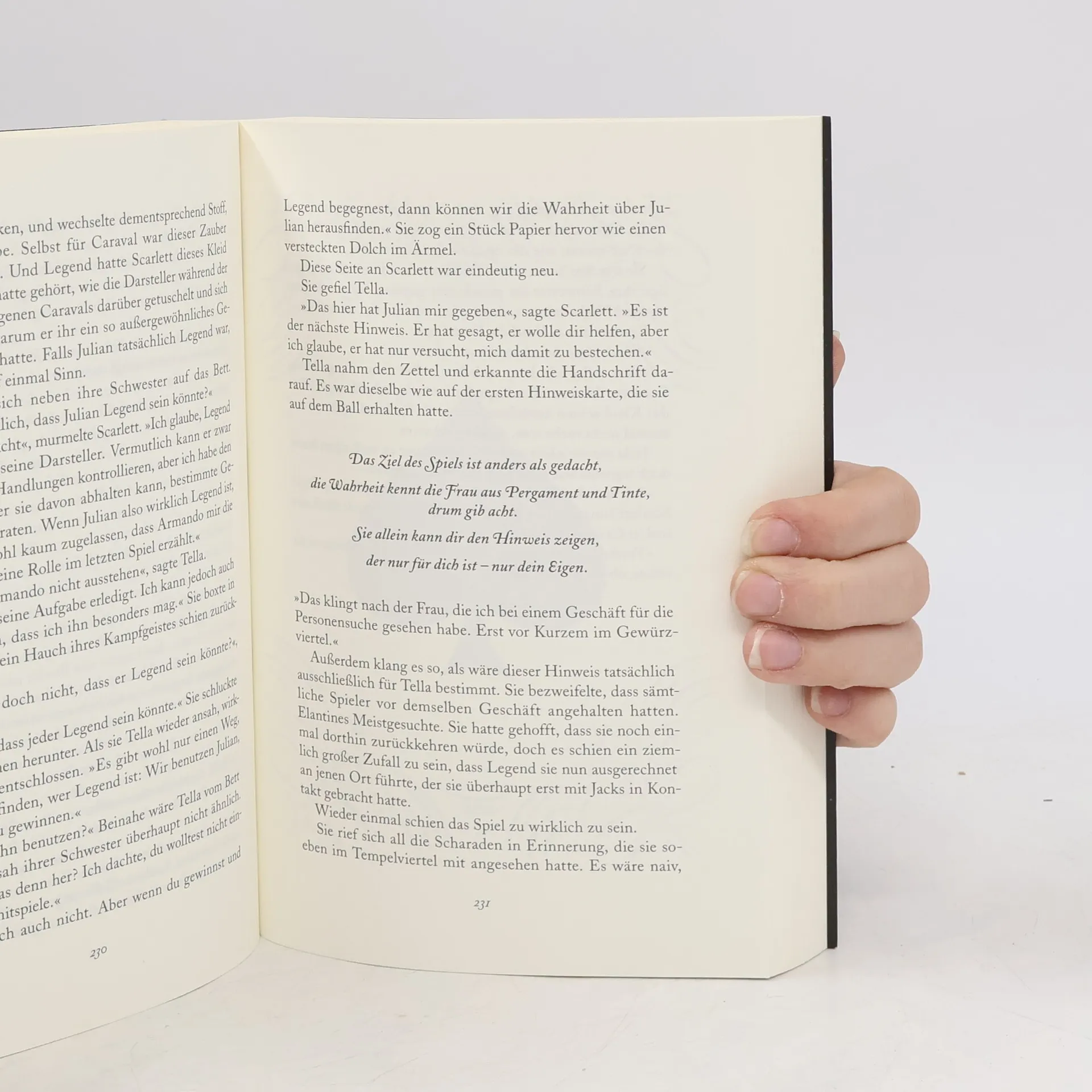 Donatella Dragna hatte kaum Zeit, sich an ihr neues Leben bei den Caraval-Schauspielern zu gewöhnen, als sie erfährt, dass Caraval-Master Legend die Aufführung eines neuen Spiels plant. Inmitten der Vorbereitungen spielt Donatella jedoch ein anderes, ebenso tödliches Spiel: Sie hat Schulden und es ist an der Zeit, diese zu begleichen. Wenn Donatella die Freiheit behalten will, die sie und ihre Schwester Scarlett sich so hart erkämpft haben, muss sie den Master von Caraval hintergehen. Donatella weiß, dass Legend gefährlich ist, doch sie lässt sich auf sein Spiel ein. Und obwohl sie sich geschworen hat, dass sie sich nie verlieben wird, ist ihr Herz plötzlich genauso in Gefahr wie ihr Leben ...
