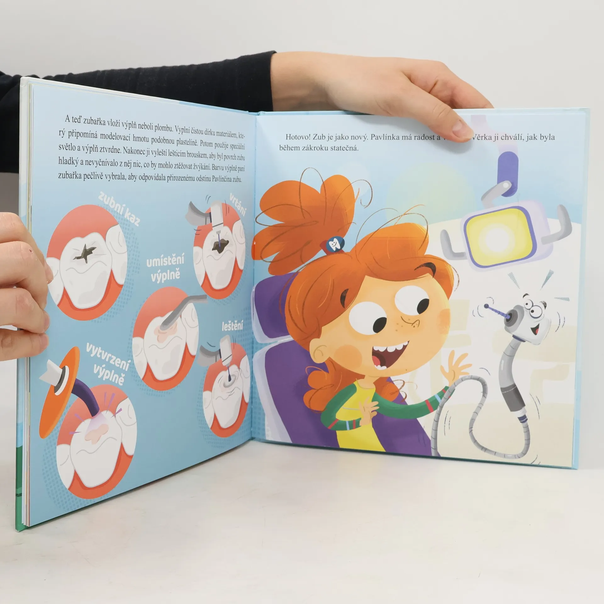 Pavlínka má maminku zubařku, a tak má pravidelnou kontrolu svých zoubků zábavnou. Maminka jí vysvětlí vše, co ji kolem zubů zajímá. Ty si v knize rovněž můžeš přečíst všechno, co chceš o zubech vědět. Možná ti vrtá v hlavě, odkud se berou zuby a proč se děti vlastně rodí bez zubů? A když jim vyrostou mléčné zuby, proč jim po čase zase vypadají a narostou nové? Jedna zásadní otázka zní – proč je důležité si zuby čistit? Od ní se odvíjejí další dotazy. Jsou sladkosti pro zuby skutečně nebezpečné? Jak si co nejlépe čistit zuby? K čemu je dobrá zubní nit? Máš kamarády s rovnátky, popřípadě i ty nosíš rovnátka? K čemu slouží? Chystáš se na svou první kontrolní návštěvu k zubaři. Jak to tam bude vypadat? V knize se prostě dovíš vše potřebné a přijdeš na to, že návštěva zubaře není zbytečná, je to tam naopak dokonce i zajímavé.