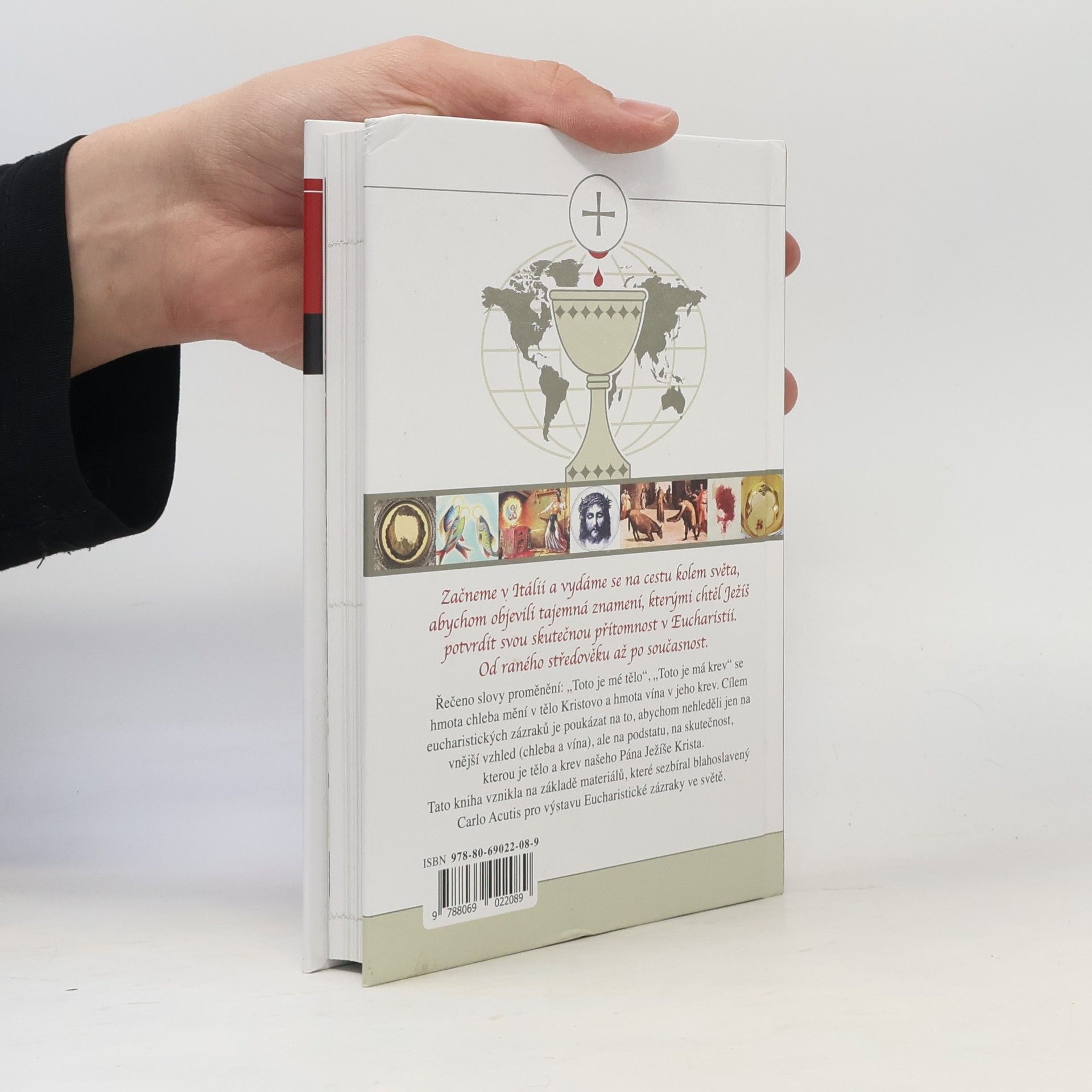 Začneme v Itálii a vydáme se na cestu kolem světa, abychom objevili tajemná znamení, kterými chtěl Ježíš potvrdit svou skutečnou přítomnost v Eucharistii. Od raného středověku až po současnost. Řečeno slovy proměnění: „Toto je mé tělo“, „Toto je má krev“ se hmota chleba mění v tělo Kristovo a hmota vína v jeho krev. Cílem eucharistických zázraků je poukázat na to, abychom nehleděli jen na vnější vzhled (chleba a vína), ale na podstatu, na skutečnost, kterou je tělo a krev našeho Pána Ježíše Krista. Tato kniha vznikla na základě materiálů, které sesbíral blahoslavený Carlo Acutis pro výstavu Eucharistické zázraky ve světě.