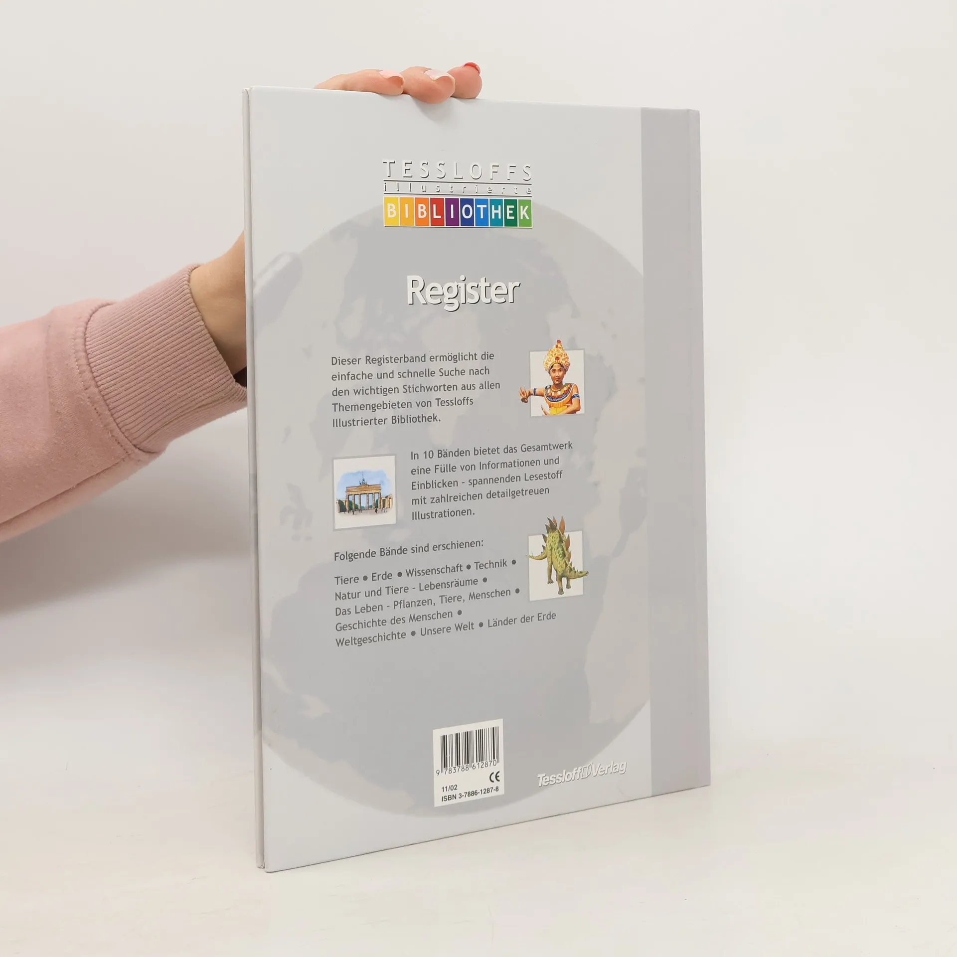 Enzyklopädie in zehn Bänden: "Tessloffs illustrierte Bibliothek" besteht aus zehn Sachbüchern und einem Registerbuch in einer schönen Box. Jedes der Bände beleuchtet eines der folgenden Themenkreise: Wissenschaft, Geschichte der Menschen, Natur und Tiere, Weltgeschichte, Länder der Erde, Technik, unsere Welt, das Leben und die Erde und liefert eine Fülle an Informationen dazu. An die 5500 Begriffe werden in den Büchern leicht verständlich erklärt und mit ausgezeichnetem Bildmaterial veranschaulicht. Karten, Zeitleisten, Übersichten und ein Glossar an jedem Buchende ergänzen die Reihe. Diese grosse Enzyklopädie ist so klar und übersichtlich aufgebaut, dass es eine Freude ist, darin zu lesen und sich ein vielfältiges Wissen anzueignen und ganze Zusammenhänge zu erkennen. Für die Schule und den Hausgebrauch. Ab 8 Jahren, ausgezeichnet, Beatrice Balint.