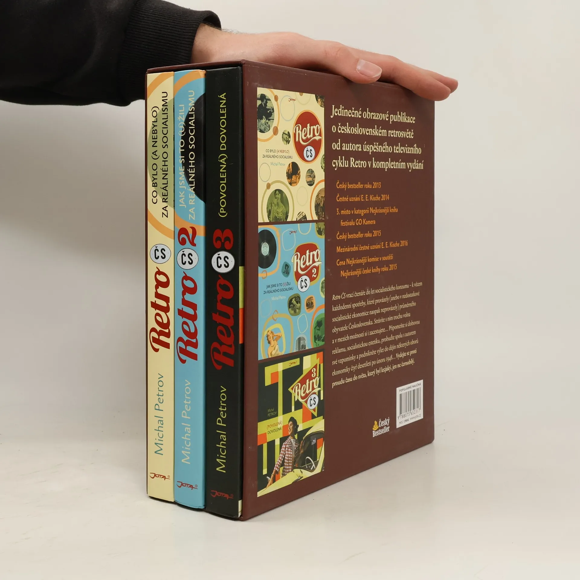 Jedinečné obrazové publikace o československém retrosvětě v kompletním vydání. Retro ČS vrací čtenáře do let socialistického konzumu – k věcem každodenní spotřeby, které provázely (anebo v nedostatkové socialistické ekonomice naopak neprovázely) průměrného obyvatele Československa. Strávíte s ním trochu volna a v mezích možností si i zacestujete… Připomeňte si dobovou reklamu, socialistickou estetiku, probuďte spolu s autorem své vzpomínky a podnikněte výlet do dějin některých oborů ekonomiky čtyř desetiletí po únoru 1948… Vydejte se proti proudu času do světa, který byl lecjaký, jen ne černobílý. Limitované vydání knih Retro ČS, Retro ČS 2 a Retro ČS 3 s exkluzivními RETRO dárky.