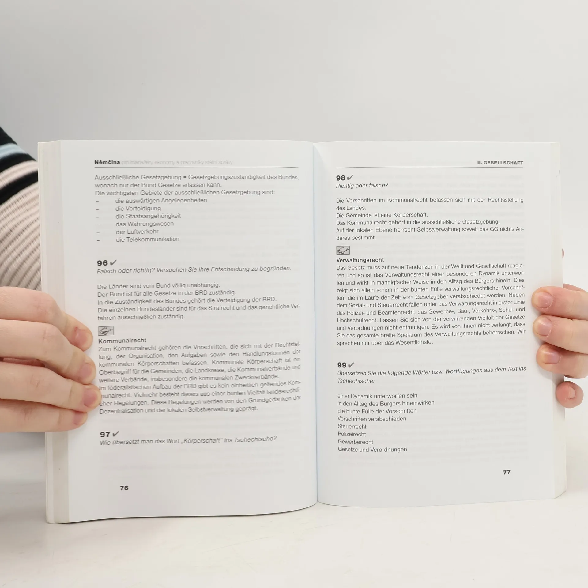 Učebnice se obrací na čtenáře zvědavého, zvídavého a přístupného všemu novému, čtenáři, který rád čte německé texty a chce jim správně porozumět. Z hlediska metodického se zde proto zohledňuje strana nejenom gramatická sama o sobě ale zejména pohled zaměřený na porozumění textu. Tato učebnice si vytyčuje za cíl naučit českého čtenáře základům orientace v německy psaných textech z oblasti ekonomiky, práva, sociologie a policejní problematiky. Němčina pro manažery, ekonomy a pracovníky státní správy je vhodným doplňkem pro studium němčiny na vysokých a středních odborných školách pro ekonomy a manažery ale i pro širší okruh zájemců.