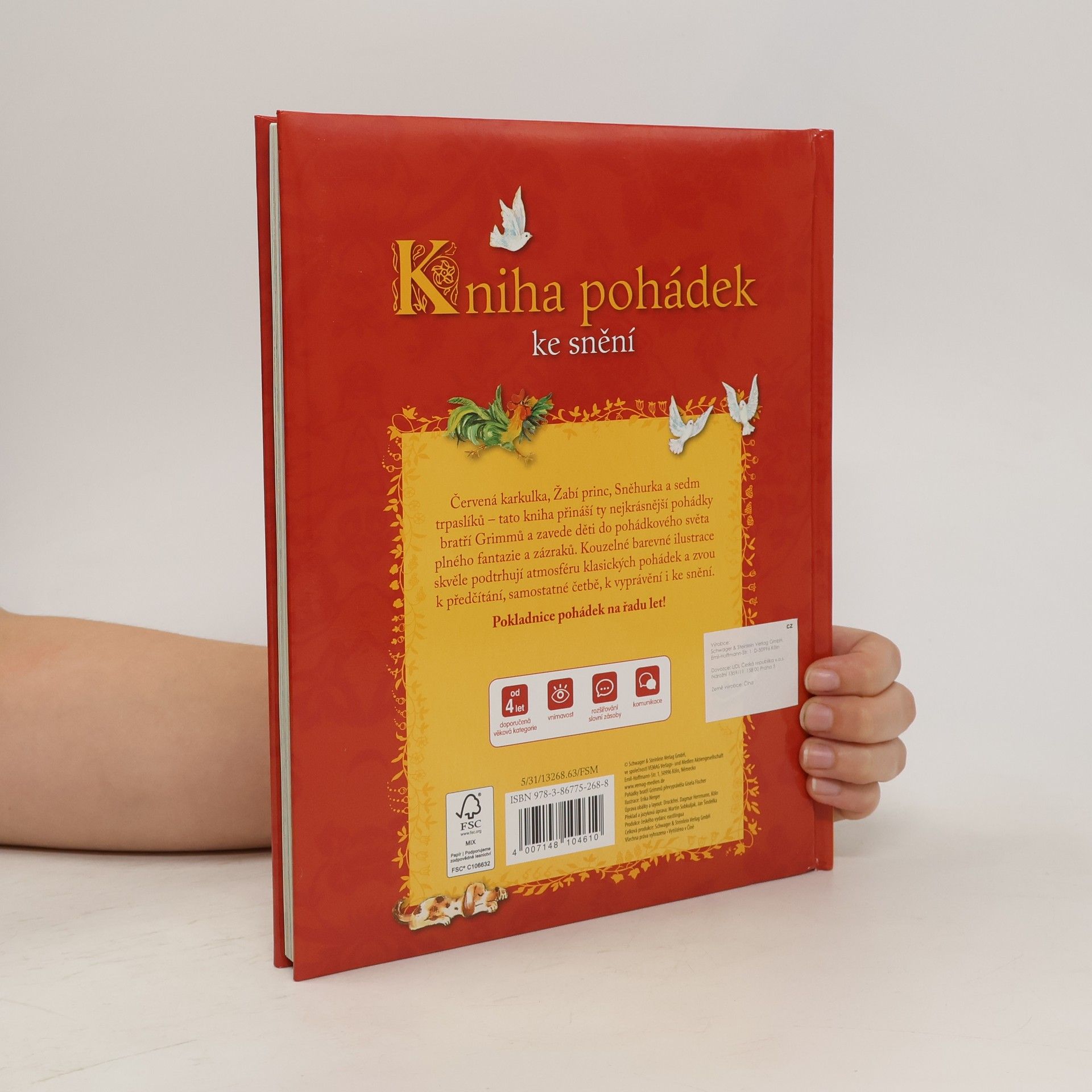 Text ze zadní strany knihy: Kniha přináší ty nejkrásnější pohádky bratří Grimmů a zavede děti do pohádkového světa plného fantazie a zázraků. Kouzelné barevné ilustrace skvěle podtrhují atmosféru klasických pohádek a zvou k předčítání, samostatné četbě, k vyprávění i ke snění. Obsahuje pohádky: Vlk a sedm kůzlátek Červená karkulka Sněženka a Růženka Žabí princ Sněhurka a sedm trpaslíků Šípková Růženka O perníkové chaloupce Popelka Kocour v botách Rumplcimprcampr Locika Obušku, z pytle ven! Brémští muzikanti