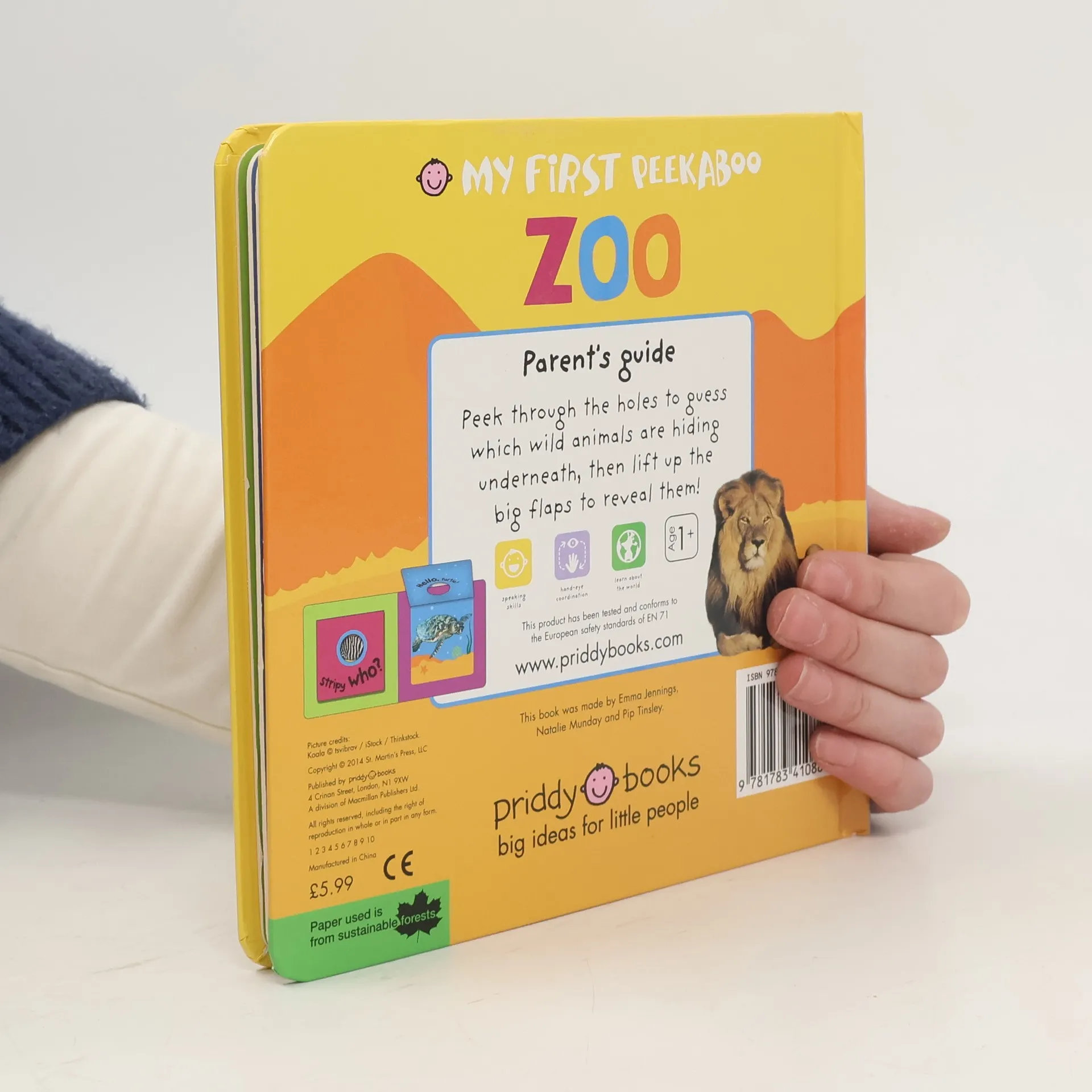 Who's that hiding underneath the flap? Lift it up to see who's waiting to say peekaboo! These first animal books for babies and toddlers have ten big flaps to lift, each die cut with a hole which peeps through to an animal pattern so that children can guess which animal the pattern belongs to, then lift the flap to see if they are right. Fun, interactive books to help children discover zoo animals, and develop their matching skills.