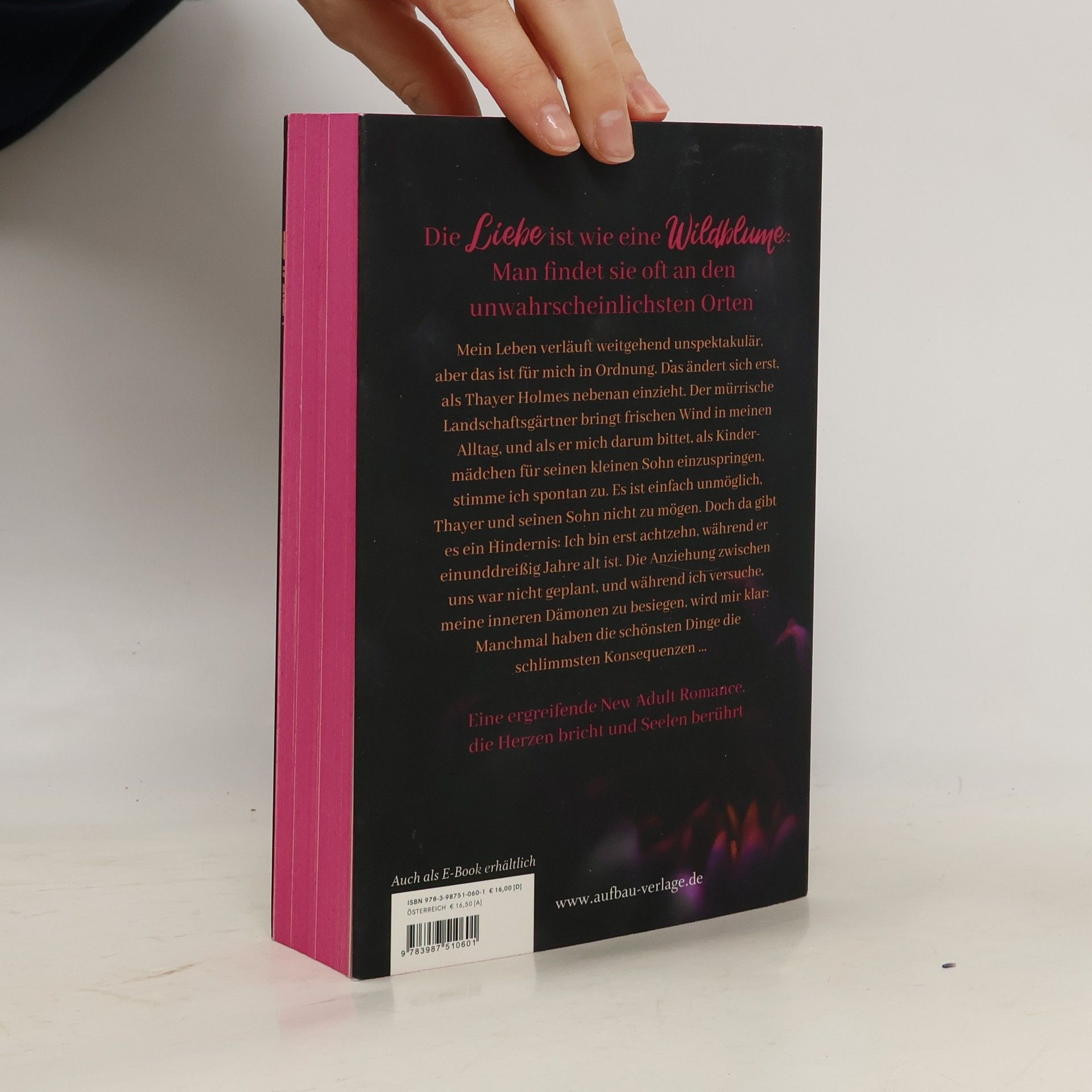 Die Liebe ist wie eine Wildblume: Man findet sie oft an den unwahrscheinlichsten Orten Mein Leben verläuft weitgehend unspektakulär, aber das ist für mich in Ordnung. Das ändert sich erst, als Thayer Holmes nebenan einzieht. Der mürrische Landschaftsgärtner bringt frischen Wind in meinen Alltag, und als er mich darum bittet, als Kindermädchen für seinen kleinen Sohn einzuspringen, stimme ich spontan zu. Es ist einfach unmöglich, Thayer und seinen Sohn nicht zu mögen. Doch da gibt es ein Hindernis: Ich bin erst achtzehn, während er einunddreißig Jahre alt ist. Die Anziehung zwischen uns war nicht geplant, und während ich versuche, meine inneren Dämonen zu besiegen, wird mir klar: Manchmal haben die schönsten Dinge die schlimmsten Konsequenzen ... Eine ergreifende New Adult Romance, die Herzen bricht und Seelen berührt