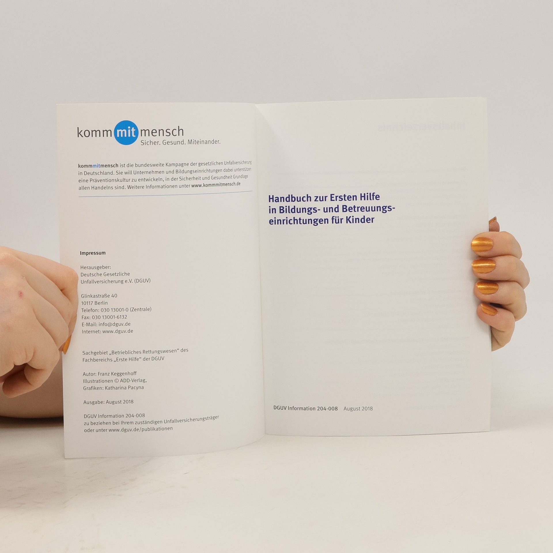 Handbuch zur Ersten Hilfe in Bildungs- und Betreuungs-einrichtungen für Kinder, Autores varios