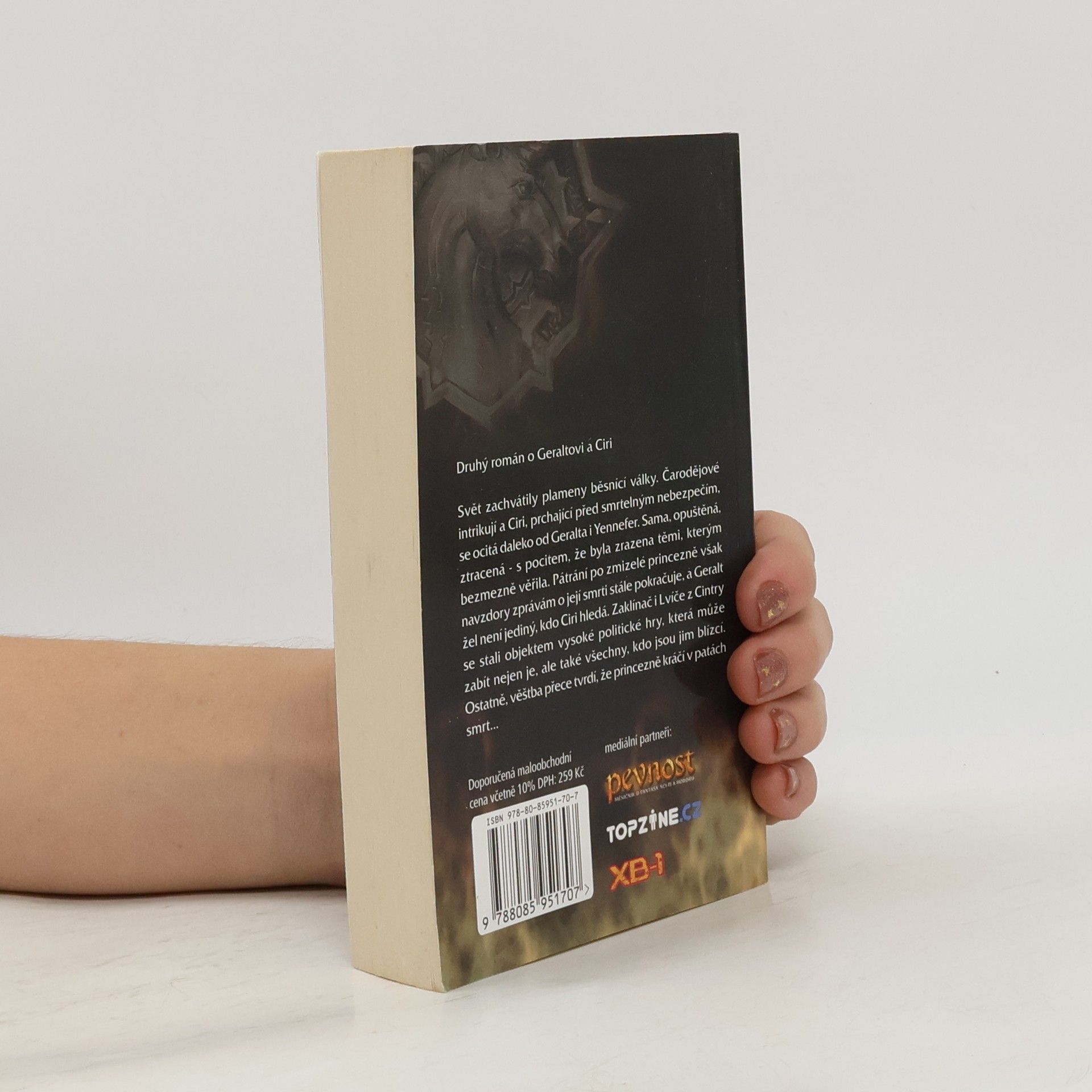 Druhý román o Geraltovi a Ciri. Svět zachvátily plameny běsnící války. Čarodějové intrikují a Ciri, prchající před smrtelným nebezpečím, se ocitá daleko od Geralta i Yennefer. Sama, opuštěná, ztracená - s pocitem, že byla zrazena těmi, kterým bezmezně věřila. Pátrání po zmizelé princezně však navzdory zprávám o její smrti stále pokračuje a Geralt žel není jediný, kdo Ciri hledá. Zaklínač i Lvíče z Cintry se stali objektem vysoké politické hry, která může zabít nejen je, ale také všechny, kdo jsou jim blízcí. Ostatně, věštba přece tvrdí, že princezně kráčí v patách smrt...