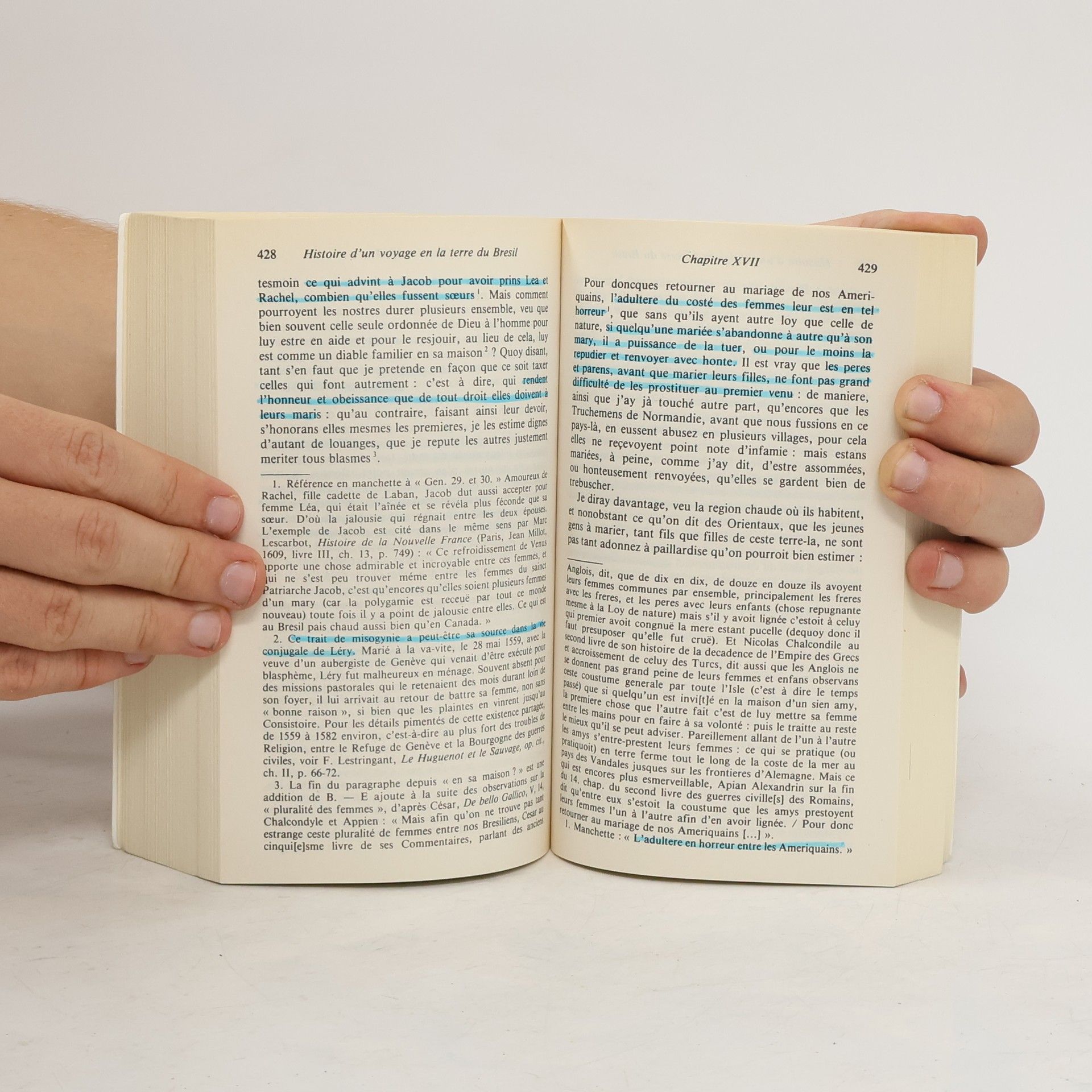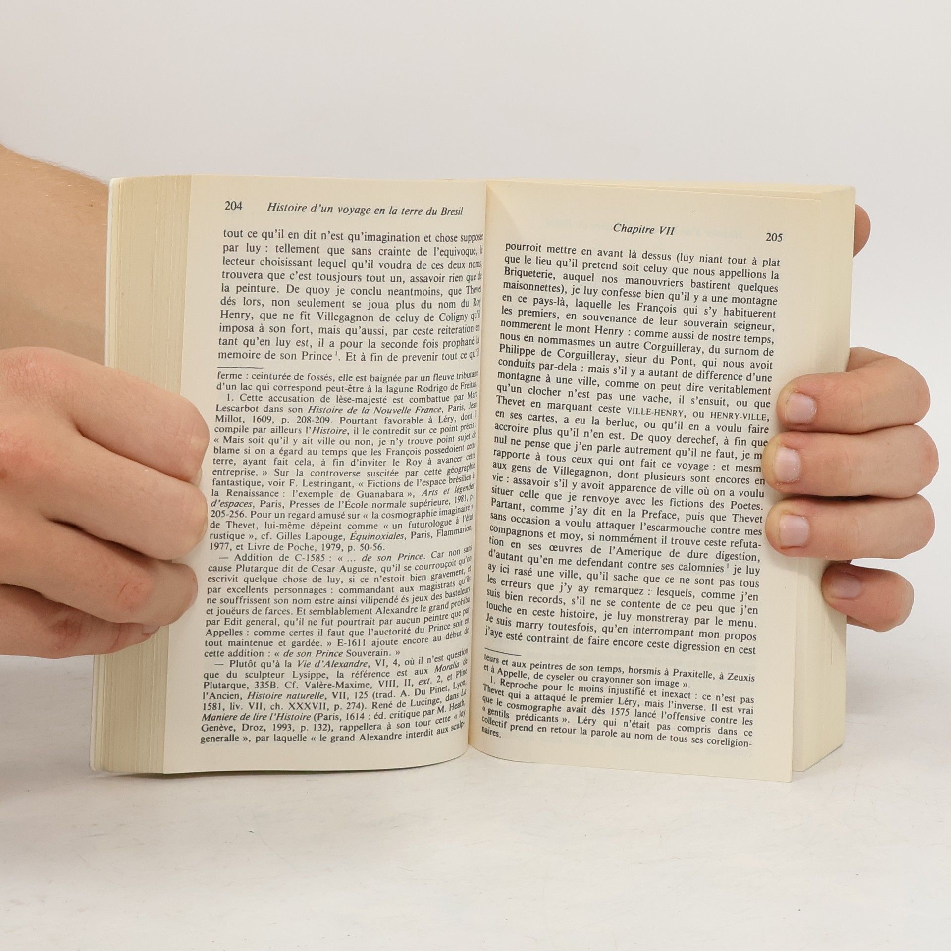 Ce livre est un enchantement. C'est de la littérature. Qu'on laisse l'ethnologie aux ethnologues et que le public lise l'Histoire d'un voyage faict en la terre du Brésil comme une grande œuvre littéraire. Et aussi comme un extraordinaire roman d'aventures. Faites le bilan de ce que raconte Léry : pendant un an et demi, ça n'arrête pas. Au cours du voyage aller, qui dure près de trois mois, ce ne sont que tempêtes, arraisonnements, canonnades, pillages. Au retour, c'est plus terrible encore. Quant au séjour brésilien, le témoignage émerveillé de Léry vaut les plus folles aventures. Claude Lévi-Strauss.