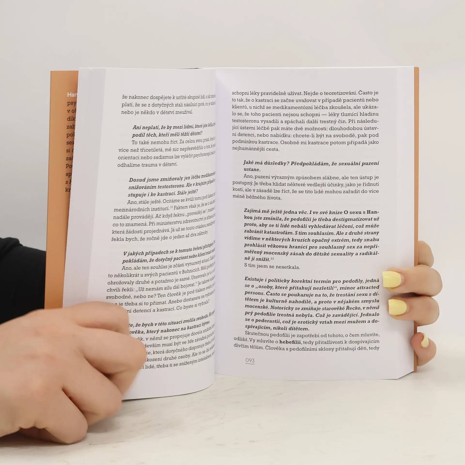Dívky, které nechtějí dospět v ženy. Tento jev svedl dohromady psychiatričku a sexuoložku Hanu Fifkovou a filozofku Terezu Matějčkovou. Poprvé se setkaly v roce 2024 při debatě o narůstajícím počtu dívek a mladých žen, které uvažují o změně pohlaví. Diskuse přerostla v několikaměsíční setkávání nad úvahami: Jak se do fenoménu promítla populární filozofická teorie, dle které si každý může stanovit, kým bude? Jakou roli hrají sociální média nebo současný feminismus? A promlouvá do fenoménu i rozšířené přesvědčení, že nad biologií vítězí společnost? Autorka knižního rozhovoru Tereza Matějčková se vrací i do devadesátých let, kdy Hana Fifková jako mladá psychiatrička a sexuoložka pracovala v bohnické léčebně na uzavřeném sexuologickém oddělení, otevírala téma sexuálního zneužívání v ordinacích a stala se "veřejnou sexuoložkou" vysvětlující Čechům, co je ještě normální. Autorku nezajímají pouze tato témata, ale i osobnost zpovídané - její zázemí, život v bouřích i přijetí stárnutí. Jak ji samu ovlivnila její třicetiletá sexuologická praxe jako dceru, matku, manželku, babičku? A jak vidí člověk, který více než třicet let řeší otázky pohlavní identity, současnost? Kniha je doplněna rozsáhlým výkladovým slovníkem pojmů a jmen, který slouží jako mapa ve členitém terénu současných (nejen) genderových a sexuologických sporů.