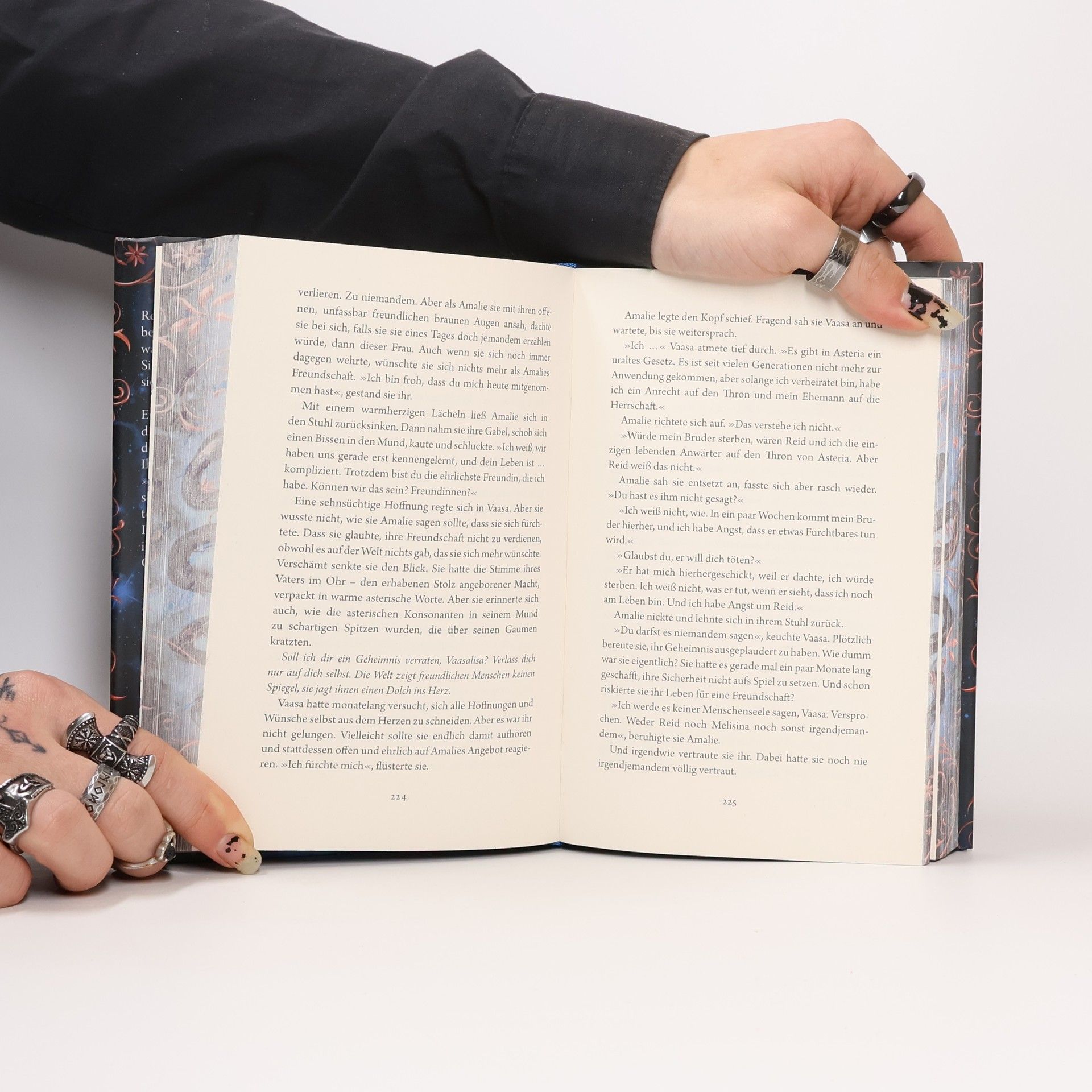 Sie soll ihren Feind heiraten. In ihn verlieben will sie sich auf keinen Fall. Dieses Buch gibt es in zwei Versionen: mit und ohne Farbschnitt. Sobald die Farbschnitt-Ausgabe ausverkauft ist, liefern wir die Ausgabe ohne Farbschnitt aus. Die Königstochter Vaasa hat nur ein Ziel: nicht als Braut an den Herrscher des verfeindeten Königreichs verkauft zu werden. Noch in der Hochzeitsnacht will sie deshalb ihren neuen Ehemann umbringen. Doch dieser stellt sich nicht nur als überraschend charmant und attraktiv heraus – er bietet ihr auch einen Handel an. Denn Reid ist der Einzige, der Vaasa helfen kann, ihre zerstörerische Magie zu kontrollieren. Vaasa lässt sich auf ein riskantes Spiel zwischen den beiden Königreichen ein – und stellt bald alles infrage, woran sie je geglaubt hat. Nie hätte sie erwartet, dass sie sich ausgerechnet bei ihren Gegnern zum ersten Mal willkommen fühlen würde. Und dass ihr Bündnis mit Reid zu einer Gefahr für ihr Herz werden könnte – und für ihr Leben … Eine intensive Enemies-to-Lovers-Liebesgeschichte zwischen zwei unglaublich starken Figuren Ein raffinierter Pageturner voller unerwarteter Wendungen, mit einem großartigen, originellen Worldbuilding Arranged Marriage meets Fake Dating in einer prickelnden Slow-Burn-Romantasy