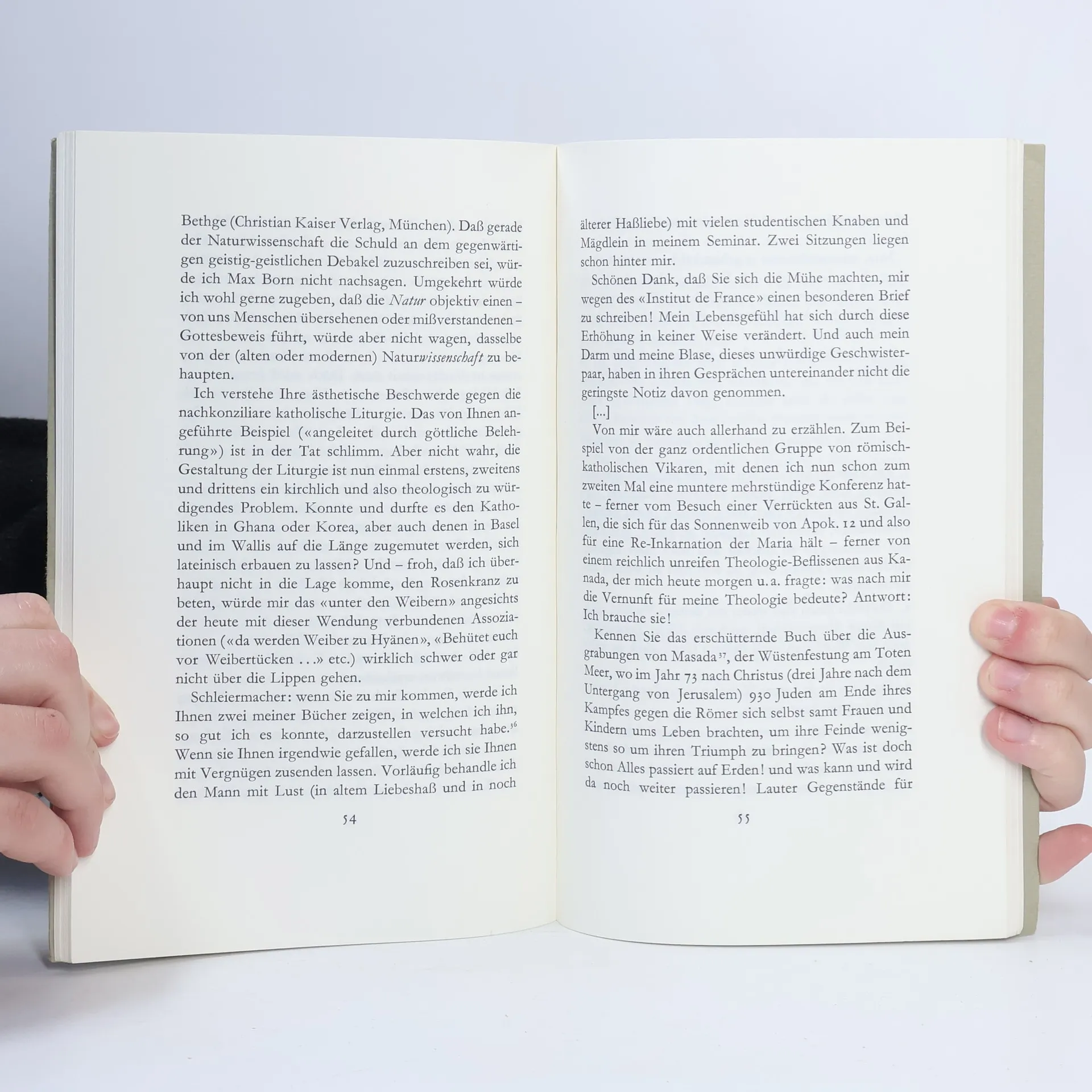 Für die Freunde Karl Barths war es eine kleine Sensation, als sie um die Monatswende Mai/Juni 1968 in dem vervielfältigten Dankbrief an die Gratulanten zu seinem 82. Geburtstag – dem letzten, den er erlebte – die folgenden Sätze lasen: «Mir ist im hohen Alter noch eine sehr merkwürdige neue Freundschaft zuteil geworden mit dem Dichter Carl Zuckmayer nämlich, den ich im vorigen Sommer, knapp bevor ich wieder auf die Nase fiel, in Saas-Fee aufsuchte und mit dem ich dann in eine muntere Korrespondenz geriet. Ganz neulich ist er (anläßlich der Basler Premiere von ‚Des Teufels General‘) auch ausgiebig bei mir gewesen, und es schien ihm zwischen meinen starrenden Bücherwänden leidlich wohl zu sein. Er ist ein Mensch. Und er hat viele ganz ernste und viele ganz heitere Möglichkeiten.» (aus dem Vorwort von Hinrich Stoevesandt)