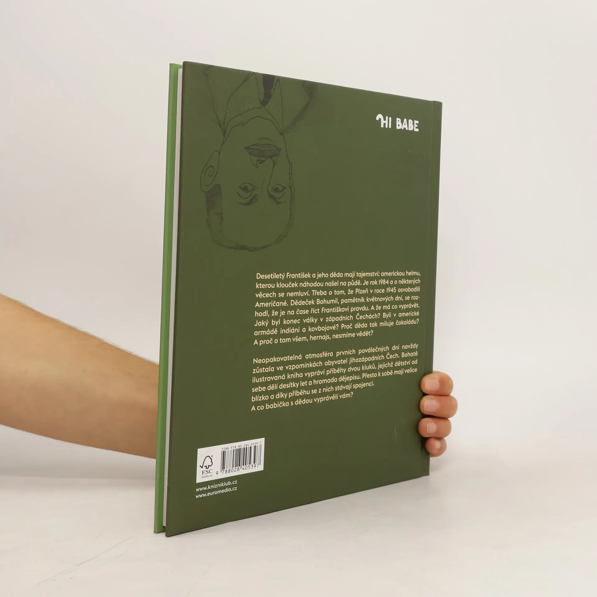 Desetiletý František a jeho děda mají tajemství: americkou helmu, kterou klouček náhodou našel na půdě. Je rok 1984 a o některých věcech se nemluví. Třeba o tom, že Plzeň osvobodili Američané. Dědeček Bohumil, pamětník slavných květnových dní, se rozhodl, že je na čase říct Františkovi pravdu. A že má co vyprávět. Jaký byl konec války? Byli v americké armádě kovbojové? A proč se o tom nesmí mluvit?Neopakovatelná atmosféra prvních poválečných dní navždy zůstala ve vzpomínkách pamětníků. Bohatě ilustrovaná kniha vypráví příběhy dvou kluků, jejichž životy od sebe dělí půl dvacátého století a hromada dějepisu, a přesto k sobě mají velice blízko.