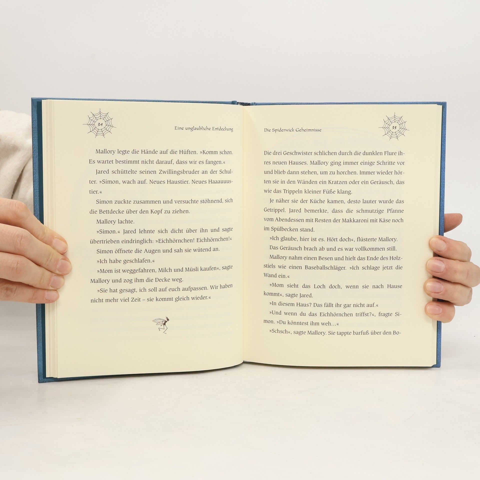 Ein altes, verfallenes Haus einer ungeliebten Tante –- das ist das neue Zuhause der Zwillinge Jared und Simon, ihrer Schwester Mallory und ihrer Mutter. Jared ist überhaupt nicht scharf darauf, dort zu wohnen. Aber Jareds Eltern sind geschieden, und sie können nirgendwo anders unterkommen. Doch das Haus von Tante Lucinda birgt viele Geheimnisse, wie die Kinder schnell feststellen: Da gibt es merkwürdige Geräusche in den Wänden, ein Nest mit einer Kakerlaken-Girlande –- und einen Aufzug, der in ein verborgenes Zimmer führt. In diesem Zimmer findet Jared Hinweise auf eine andere Welt, in der sich Elfen, Kobolde und Gnome tummeln. Und bald schon bekommen die Kinder die Anwesenheit dieser Wesen hautnah zu spüren: Mallorys Haare werden an ihr Bett geknotet, und Jared trifft einen leibhaftigen Irrwicht. Außerdem findet er “Arthur Spiderwicks Handbuch für die fantastische Welt um dich herum”, und damit geht das Abenteuer erst so richtig los. In diesem ersten Teil der Geschichte um Jared, seine Geschwister und die fantastische Welt der Elfen und Kobolde werden die Grundlagen gelegt für die Abenteuer, die die drei Kinder in den Folgebänden erleben werden. In vielerlei Hinsicht wird hier eine klassische Fantasygeschichte erzählt, doch manches daran ist ungewöhnlich: Die Kinder leben keineswegs in einer heilen Märchenwelt, sondern leiden unter der Scheidung ihrer Eltern und haben ihre Fehler und Macken.