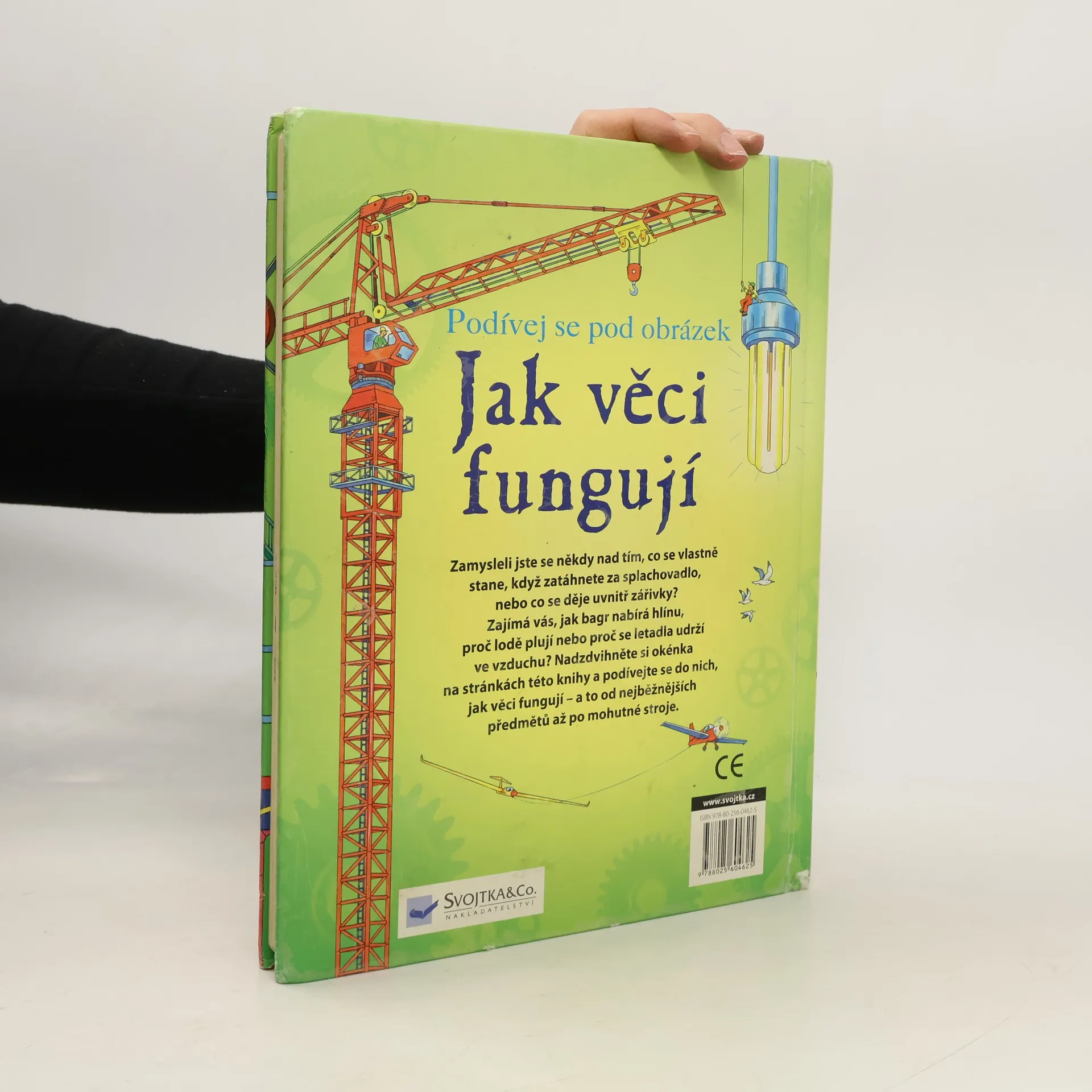 Zamysleli jste se někdy nad tím, jak protéká voda splachovacím zařízením, případně co se děje uvnitř zářivky – proč vlastně svítí? Zajímá vás, jak bagr nabírá hlínu, proč lodě plují nebo proč se letadla udrží ve vzduchu? Nadzdvihněte okénka na stránkách této knihy a podívejte se do nich, jak věci fungují – a to od nejběžnějších předmětů až po mohutné stroje. V knížce jich naleznete více než 90.