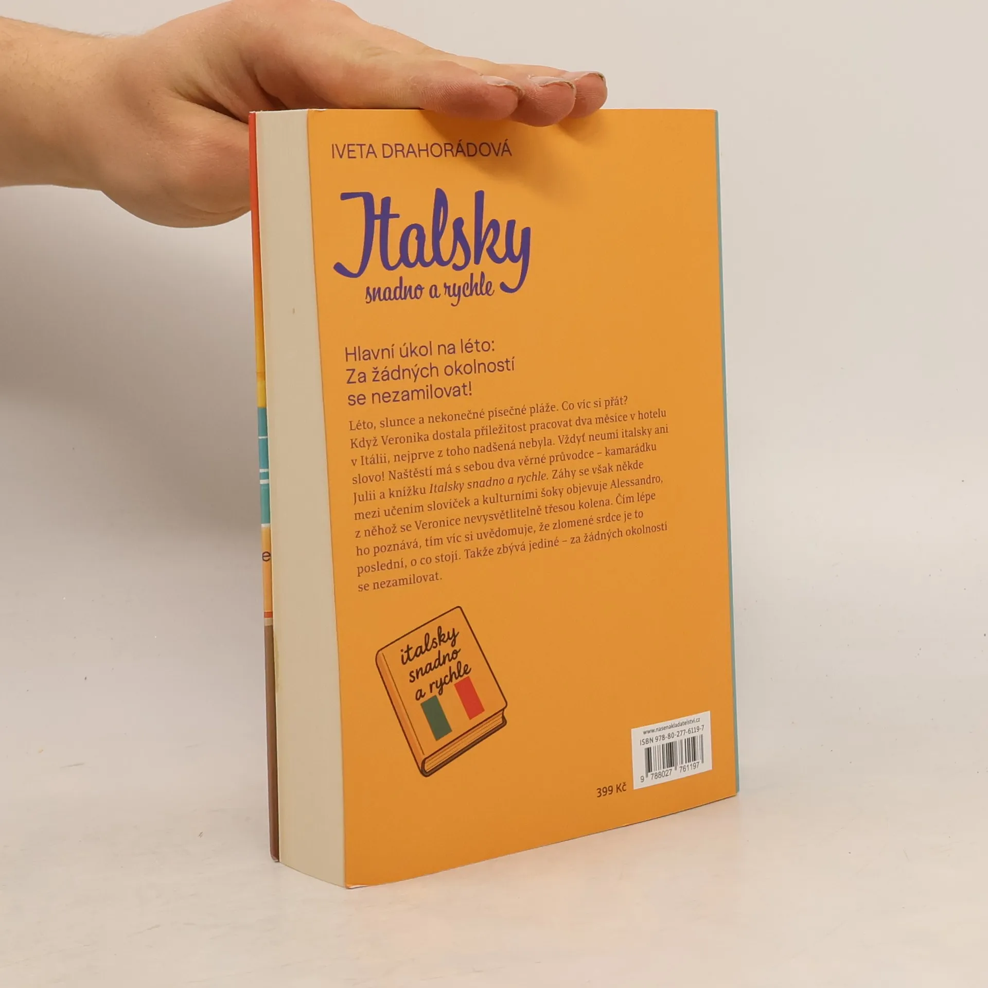 Léto, slunce a nekonečné písečné pláže. Co víc si přát? Když Veronika dostala příležitost pracovat dva měsíce v hotelu v Itálii, nejprve z toho nadšená nebyla. Vždyť neumí italsky ani slovo! Naštěstí má s sebou dva věrné průvodce – kamarádku Julii a knížku Italsky snadno a rychle. Záhy se však někde mezi učením slovíček a kulturními šoky objevuje Alessandro, z něhož se Veronice nevysvětlitelně třesou kolena. Čím lépe ho však poznává, tím víc si uvědomuje, že zlomené srdce je to poslední, o co stojí. Takže zbývá jediné – za žádných okolností se nezamilovat.