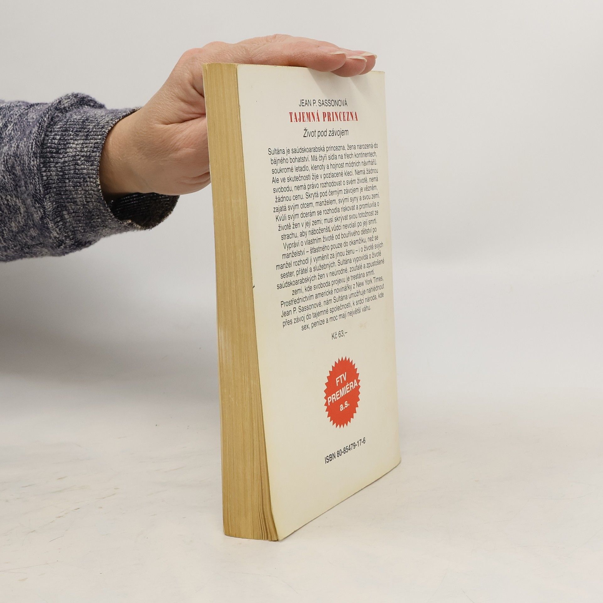 Sultána je saúdskoarabská princezna, žena narozená do bájného bohatství. Má čtyři sídla na třech kontinentech, soukromé letadlo, klenoty a hojnost módních návrhářů. Ale ve skutečnosti žije v pozlacené kleci. Nemá žádnou svobodu, nemá právo rozhodovat o svém životě, nemá žádnou cenu. Skrytá pod černým závojem je vězněm, zajatá svým otcem, manželem, svými syny a svou zemí. Kvůli svým dcerám se rozhodla riskovat a promluvila o životě žen v její zemi; musí skrývat svou totožnost ze strachu, aby náboženští vůdci nevolali po její smrti. Vypráví o vlastním životě od bouřlivého dětství po manželství - šťastného pouze do okamžiku, než se manžel rozhodl ji vyměnit za jinou ženu - i o životě svých sester, přátel a služebných. Sultána vypovídá o životě saúdskoarabských žen v neúrodné, zoufalé a zpustošené zemi, kde svoboda projevu je trestána smrtí. Prostřednictvím americké novinářky z New York Times, Jean P. Sassonové, nám Sultána umožňuje nahlédnout přes závoj do tajemné společnosti, k srdci národa, kde sex, peníze a moc mají největší váhu