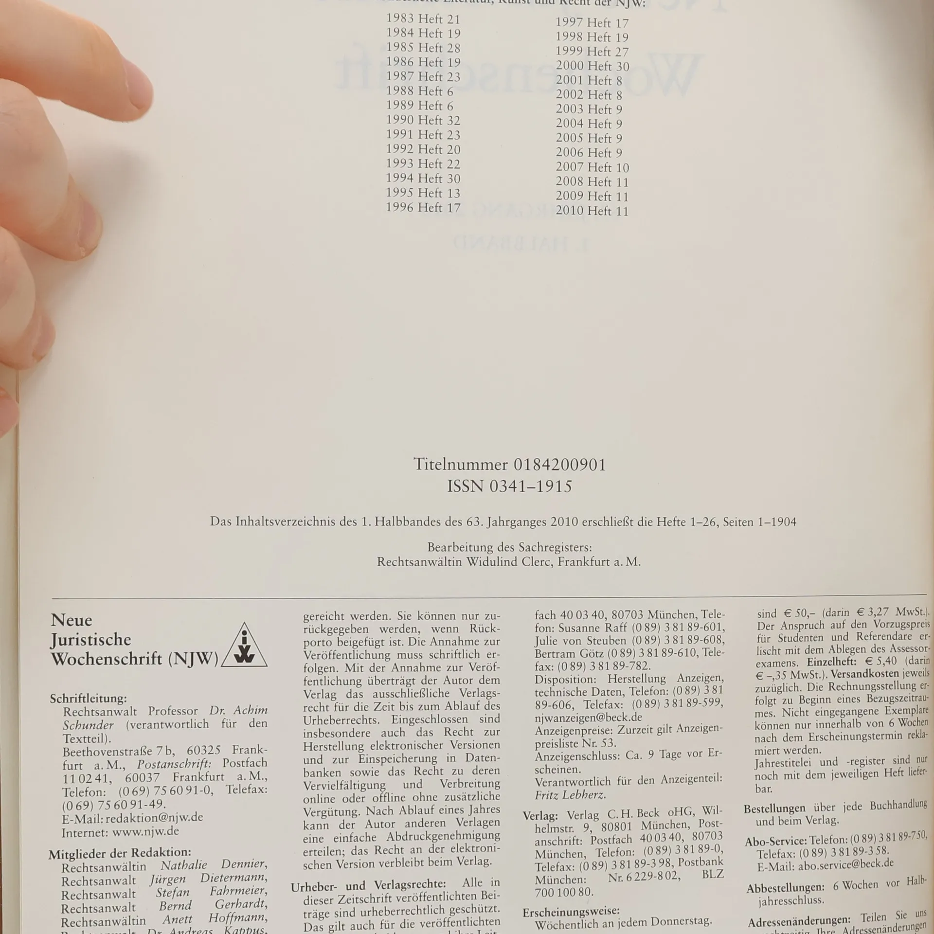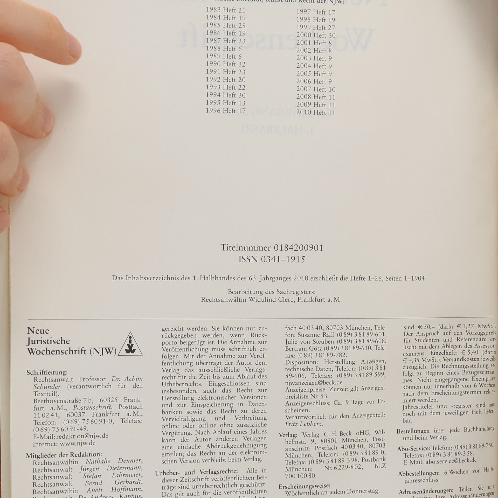 Neue Juristische Wochenschrift 63, Autores varios
