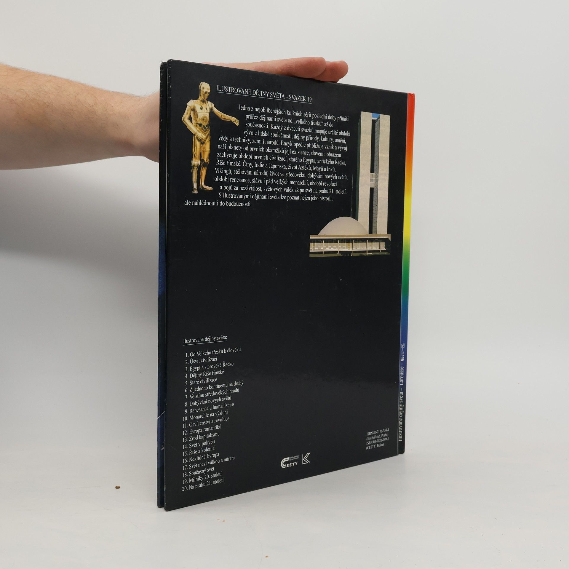 Milí čtenáři, kosmonauti, kteří z moderních vesmírných korábů viděli naši Zemi, hovoří o nezapomenutelných zážitcích. My Vám nabízíme něco víc: zveme Vás na výlet do hlubin věků, o miliardy let zpátky až k velkému třesku, okamžiku, kdy vznikla naše planeta. Vašimi průvodci budou významní vědci z oborů jako historie, přírodověda, technika, umění, literatura a mnoha dalších. Spolu s ilustrátory budou s Vámi ve dvaceti svazcích Ilustrovaných dějin světa sdílet velké dobrodružství při objevování a zkoumání vzniku a vývoje světa od prvních okamžiků jeho existence přes úsvit civilizací, dějiny Egypta a antického Řecka, výboje Říše římské, stěhování národů a šíření kultury z jednoho světadílu na druhý, přes období feudalismu, osvícenství a revoluční změn v Evropě až po poslední historické zvraty, které napovídají o podobě 21. století, na jehož prahu stojíme.