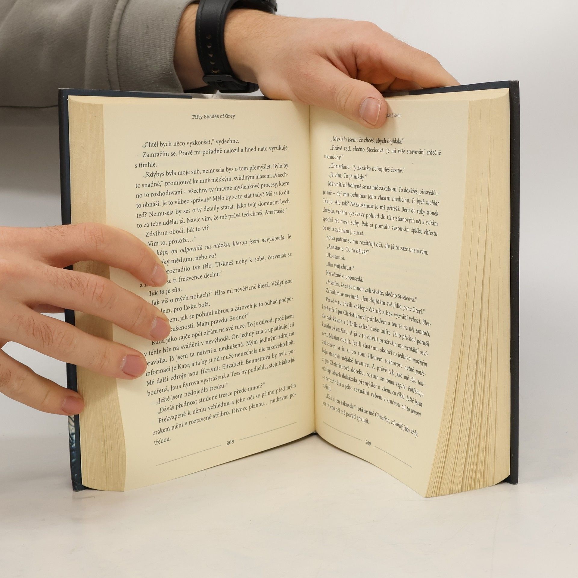 Erotický román o temných touhách v každém z nás… Když se dvaadvacetiletá studentka literatury Anastasia vydává na pohovor s mladým podnikatelem Christianem Greyem, netuší, že potká muže, který jí změní život i hodnoty. Christian je pohledný, chytrý a… tajemný. Naivní a nevinná Anastasia si začíná uvědomovat, že přes jeho skrývaná tajemství jím začíná být úplně posedlá. Ale ani Christian není vůči její kráse, šarmu a charakteru imunní a připouští, že on po ní také touží – ovšem za vlastních, specifických podmínek…